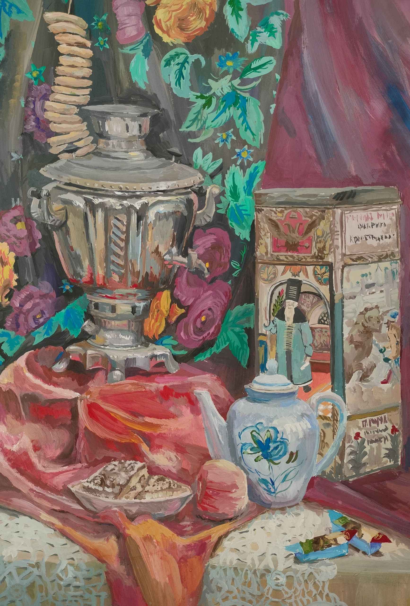 42*60, бумага, гуашь, работа передаёт атмосферу домашнего уюта и гостеприимства, характерную для русской культурыДанные участника