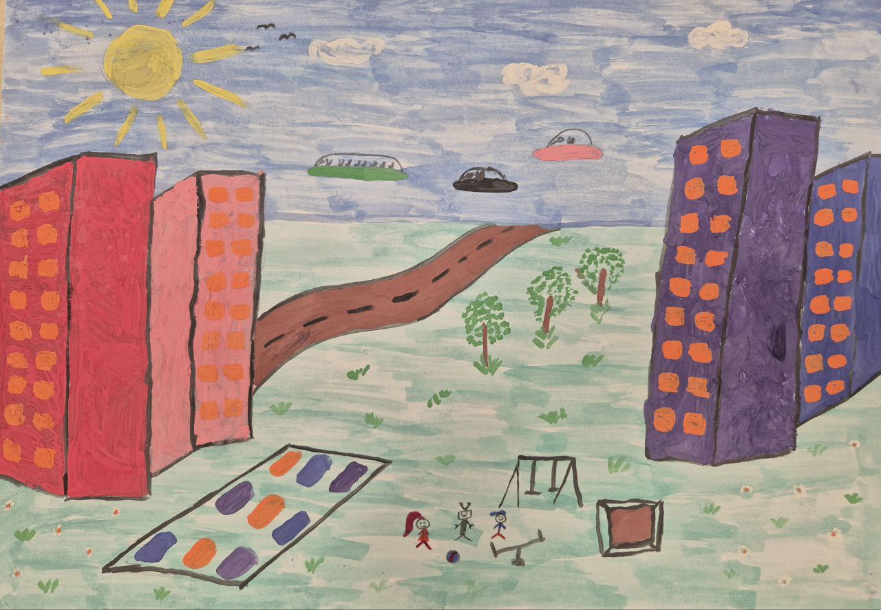 Работа выполнена красками. На рисунке показан двор дома.Данные участника