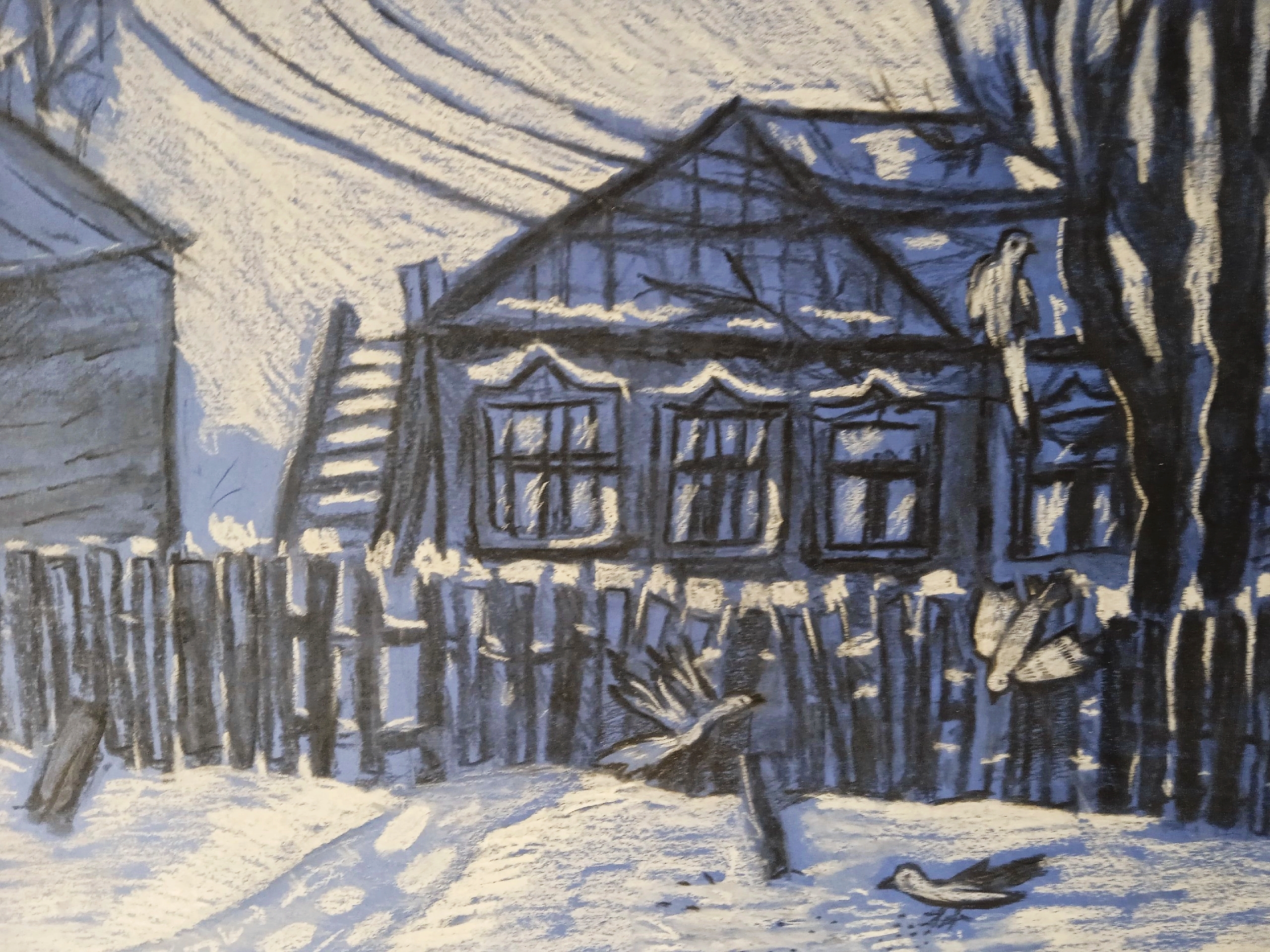 "Родная деревня", пастельная бумага, угольДанные участника