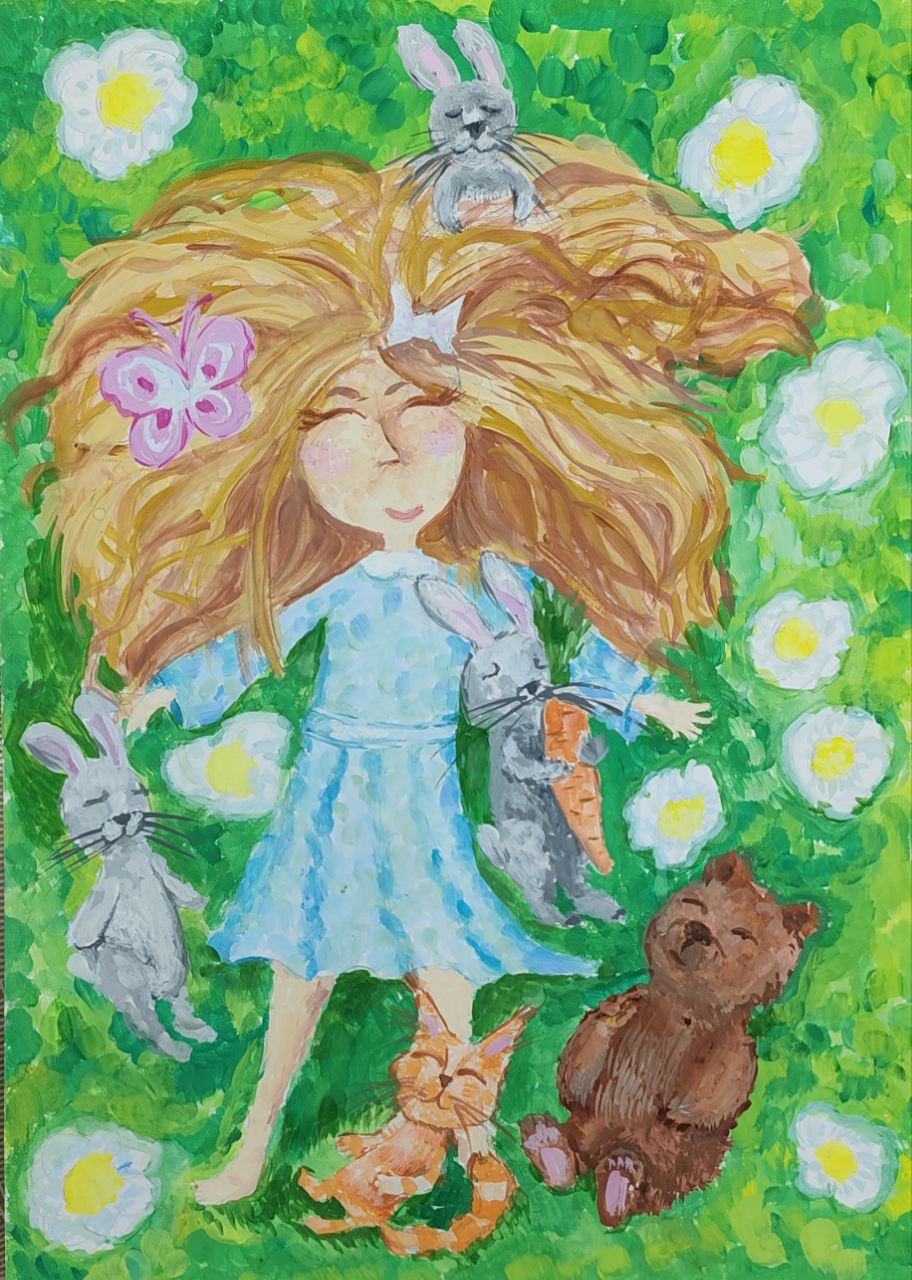 А3, гуашь. Я очень люблю животных и лето!Данные участника