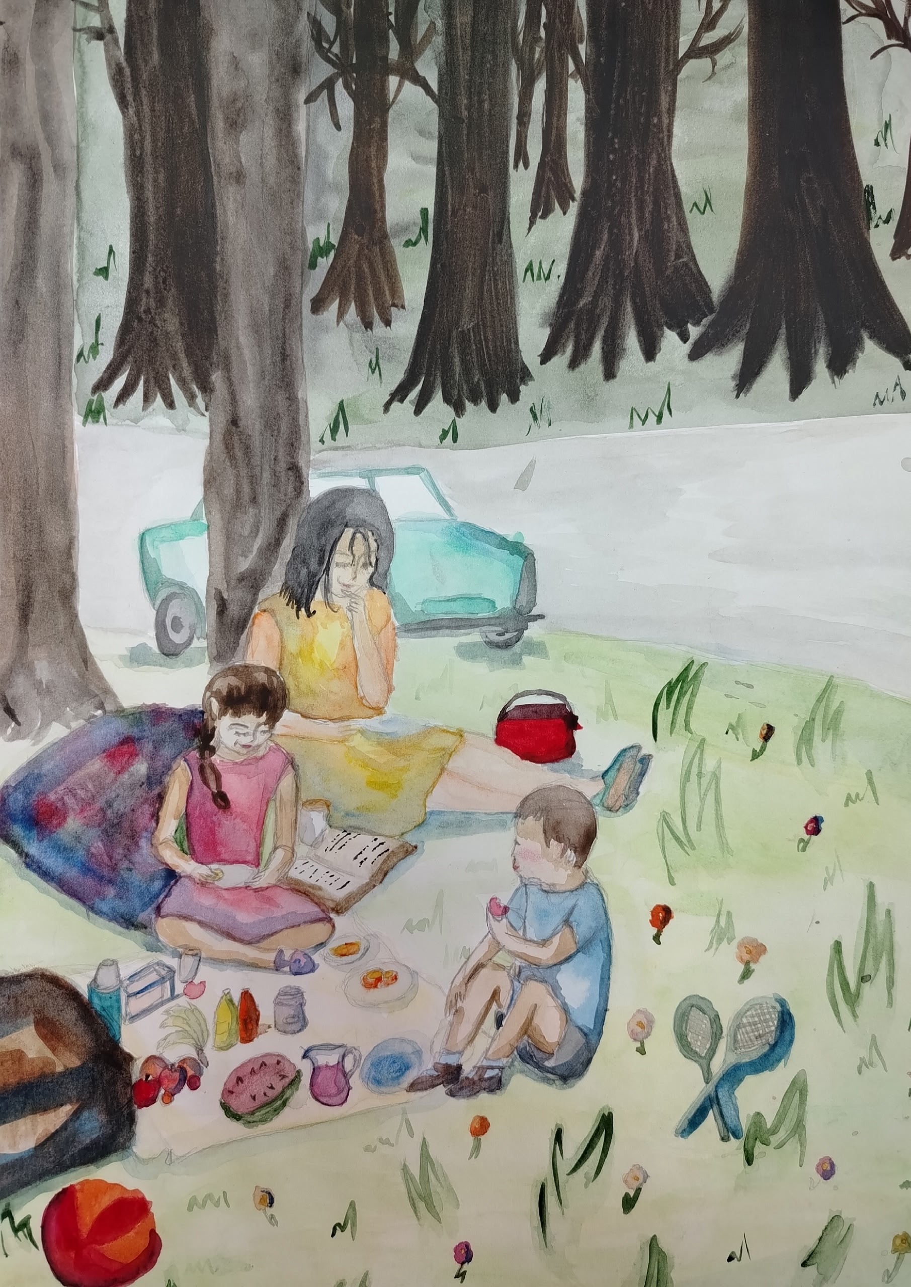 Акварельная работа А3 изображающая семейный отдыхДанные участника