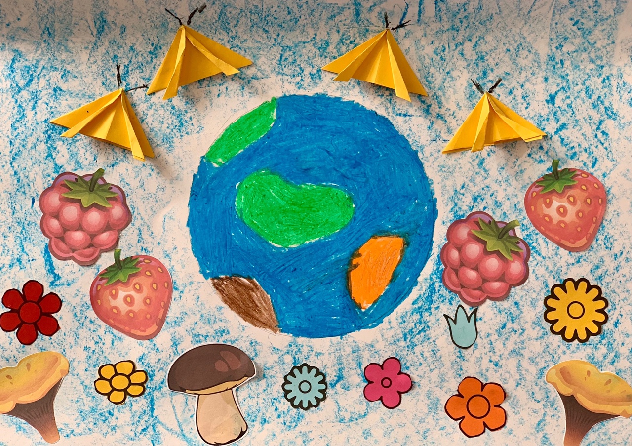формат А3, рисунок цветными мелками , с применением аппликации из бумаги, оригамиДанные участника