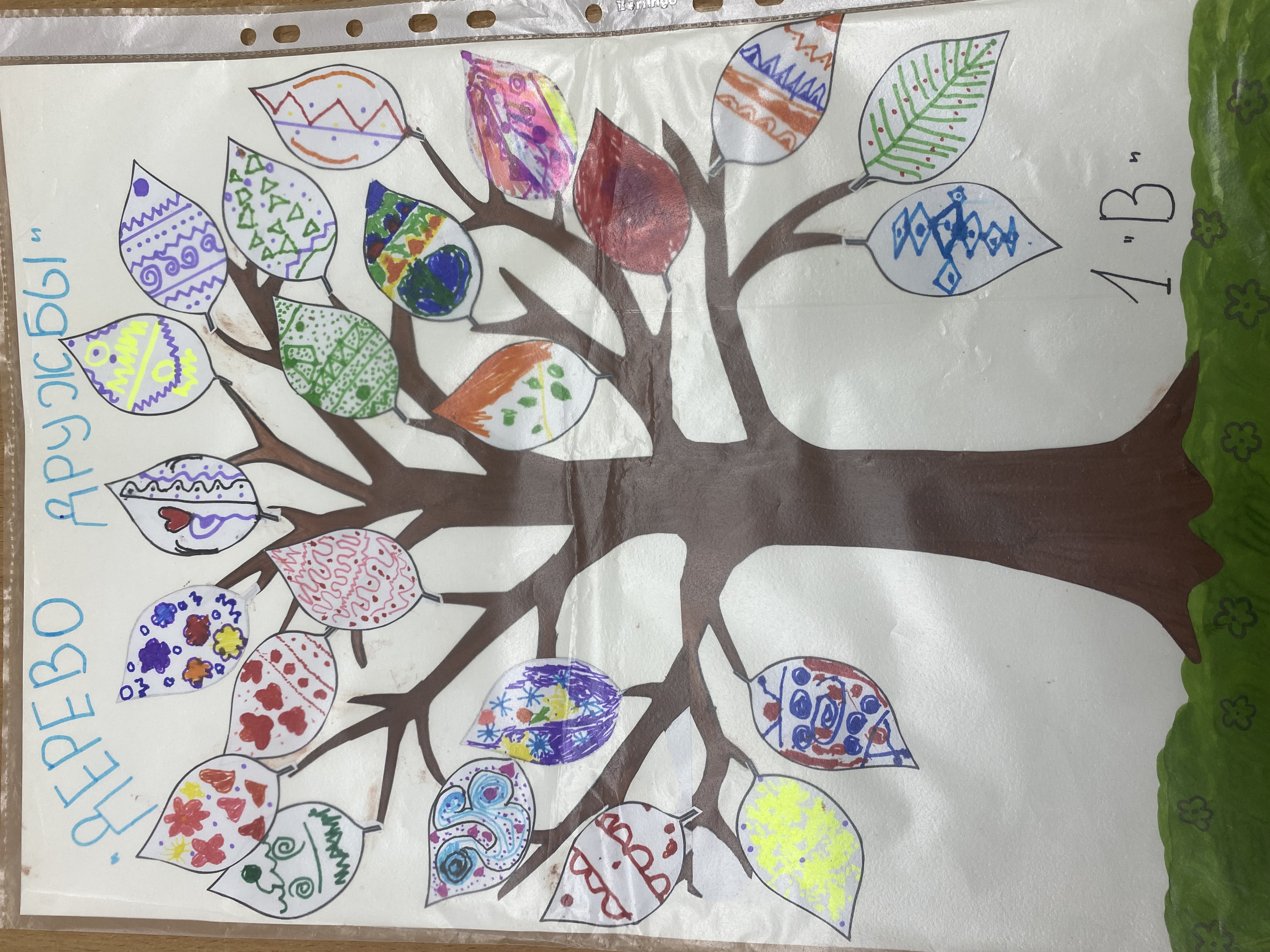 Размер работы: лист А2. Техника выполнения: коллективная аппликация из цветной бумаги с элементами рисования. Пояснения: работа выполнена учащимися 1 «В» класса. В центре изображено дерево — символ Прикамья. Каждый листочек изготовлен руками детей и символизирует дружбу, единство и многообразие народов Пермского края. На листьях ребята сами нарисовали национальные узоры, что подчёркивает красоту и уникальность культурных традиций края. В «Дереве дружбы» отражена идея того, что, несмотря на различия, все мы — части одного большого дерева жизни, объединённые корнями родного края.Данные участника