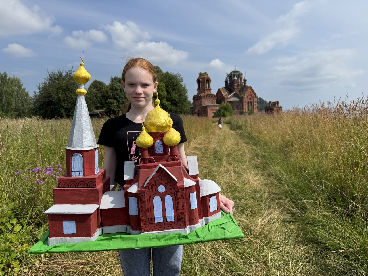Дарья Алексеева уже несколько лет занимается изучением истории храма Петра и Павла в селе Таман Пермского края, а также принимает участие в различных туристических и творческих проектах, чтобы привлечь как можно больше внимания людей к проблеме восстановления храма. "Уникальный храм сейчас находится в плачевном состоянии и нуждается в реставрации. Если действовать быстро, то еще можно успеть сохранить и воссоздать внутренние росписи и спасти архитектурный ансамбль. Так как у храма сейчас отсутствует центральный купол, я сделала 3D модель, которая показывает, каким храм будет после реставрации. Я надеюсь, что в ближайшее время на восстановление храма будут выделены средства и силы, ведь такую красоту нельзя потерять! "Макет выполнен из вторичного сырья: старые картонные коробки, фольга, краска. По ссылке видео ролик о том, как макет создавался, а также видео с более детальным обзором макета.Данные участника
