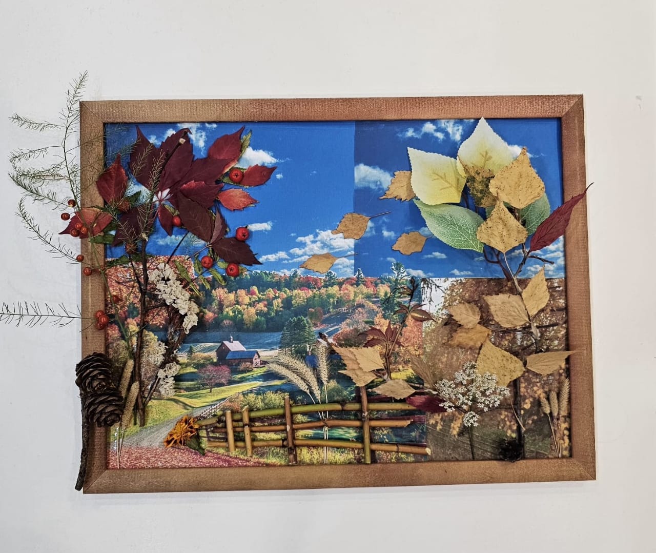 Картина из природных материалов. Изображает красоты Пермского края. Выполнена в технике аппликации.Данные участника