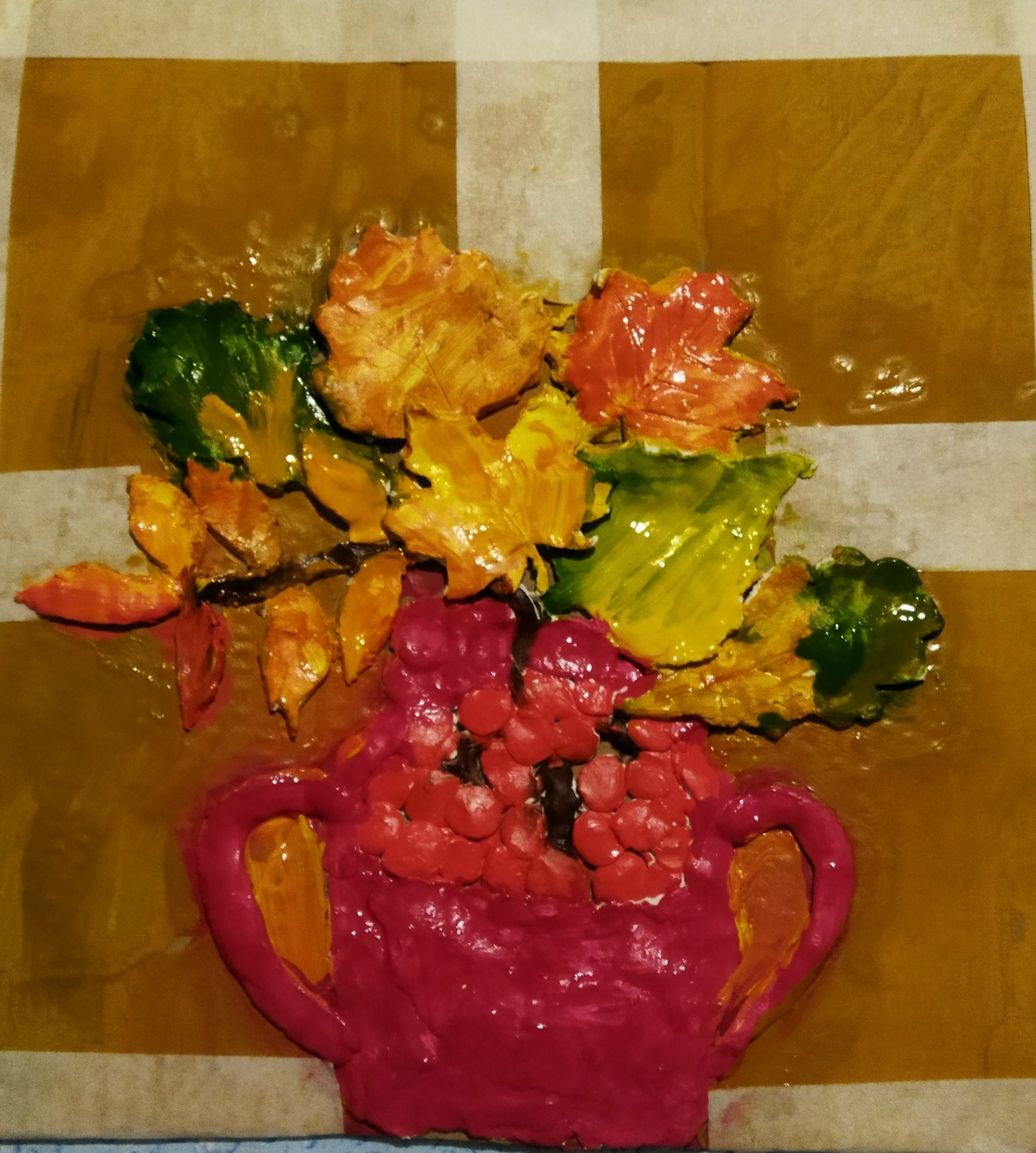 Работа выполнена из пластичной массы,раскрашена гуашью,формат работы 30/30 смДанные участника