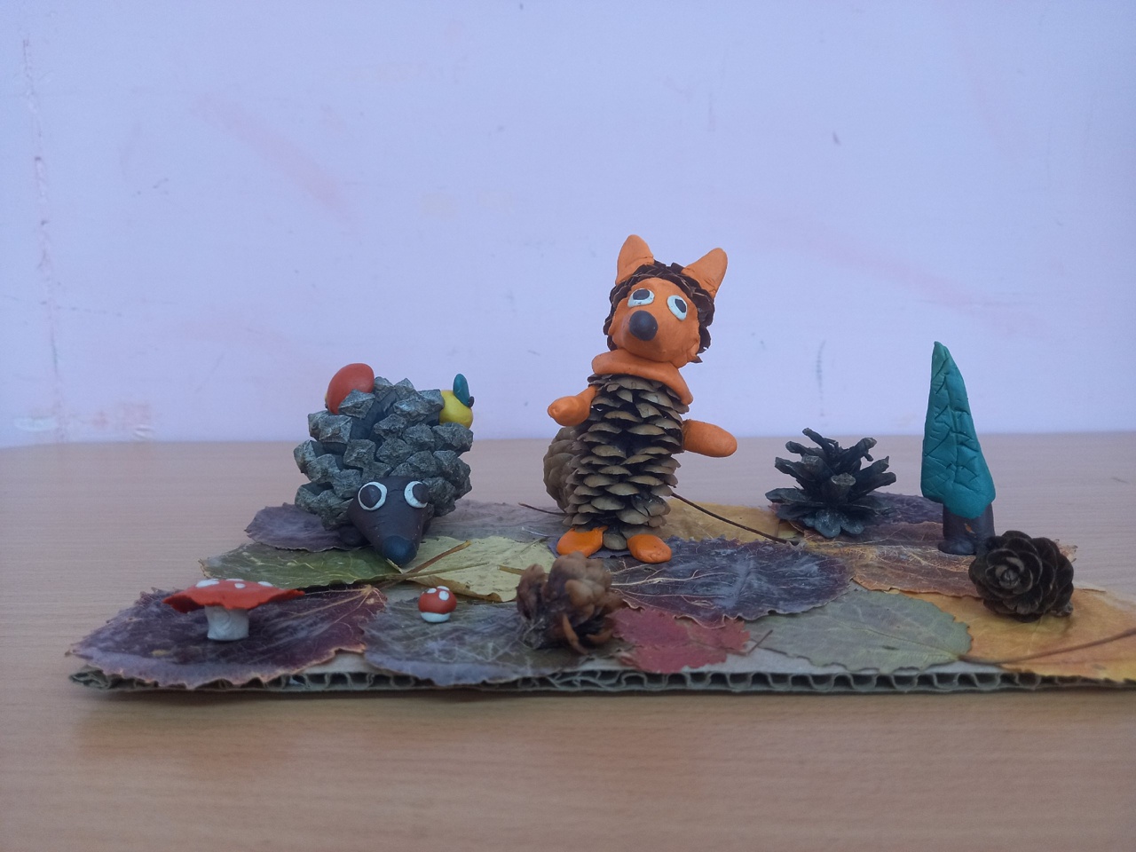 Работа выполнена из природных материалов и пластилина, формат 15*15*20Данные участника