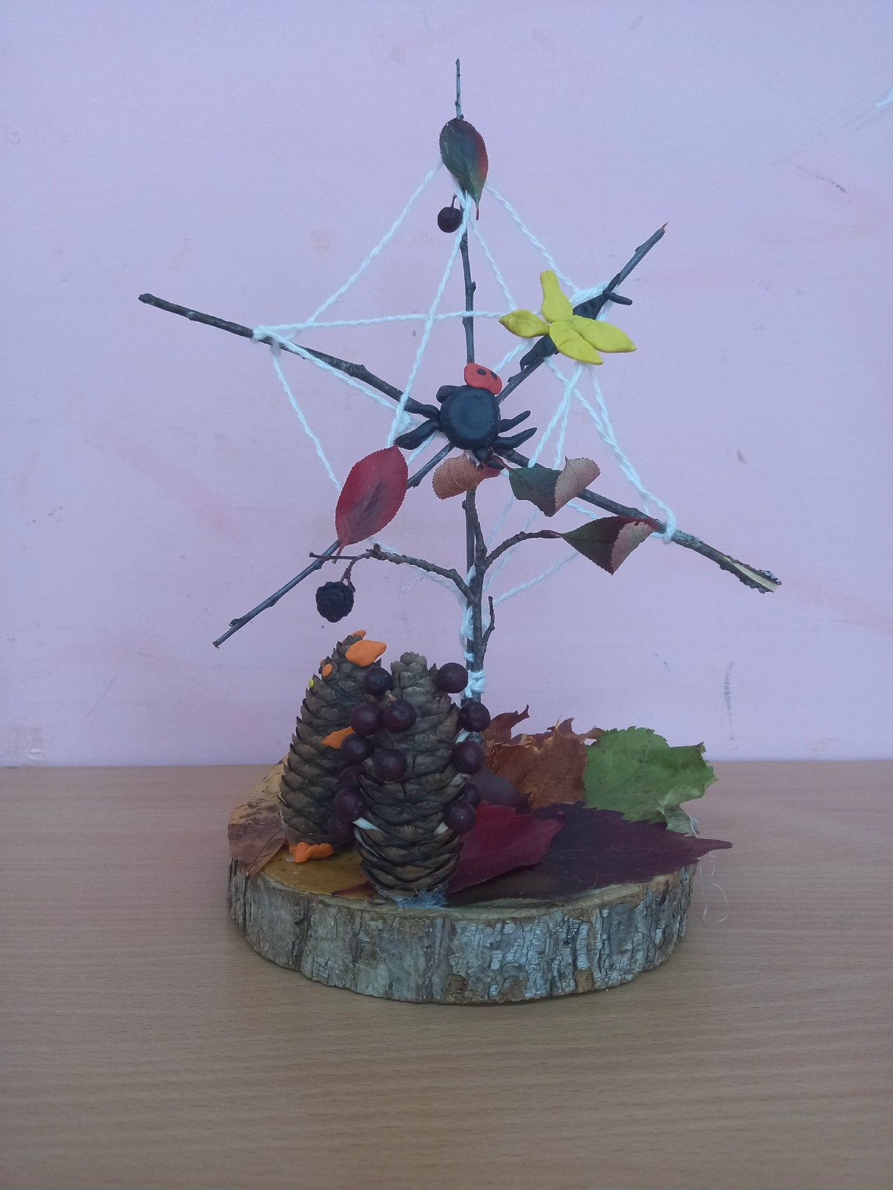 15*30, работа выполнена из природных материалов, пластилина, ниток.Данные участника