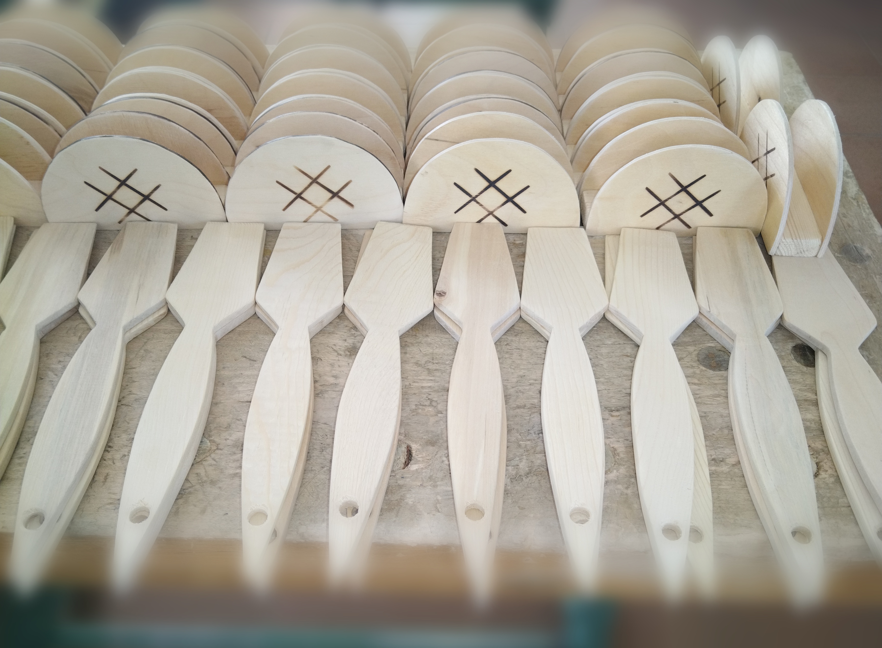 Салфеница и лопатка изготовлены из древесины твердых пород выпиливанием ручным лобзиком по дереву. На салфетнице нанесен Коми-пермяцкий орнамент техникой горячего тиснения.Данные участника