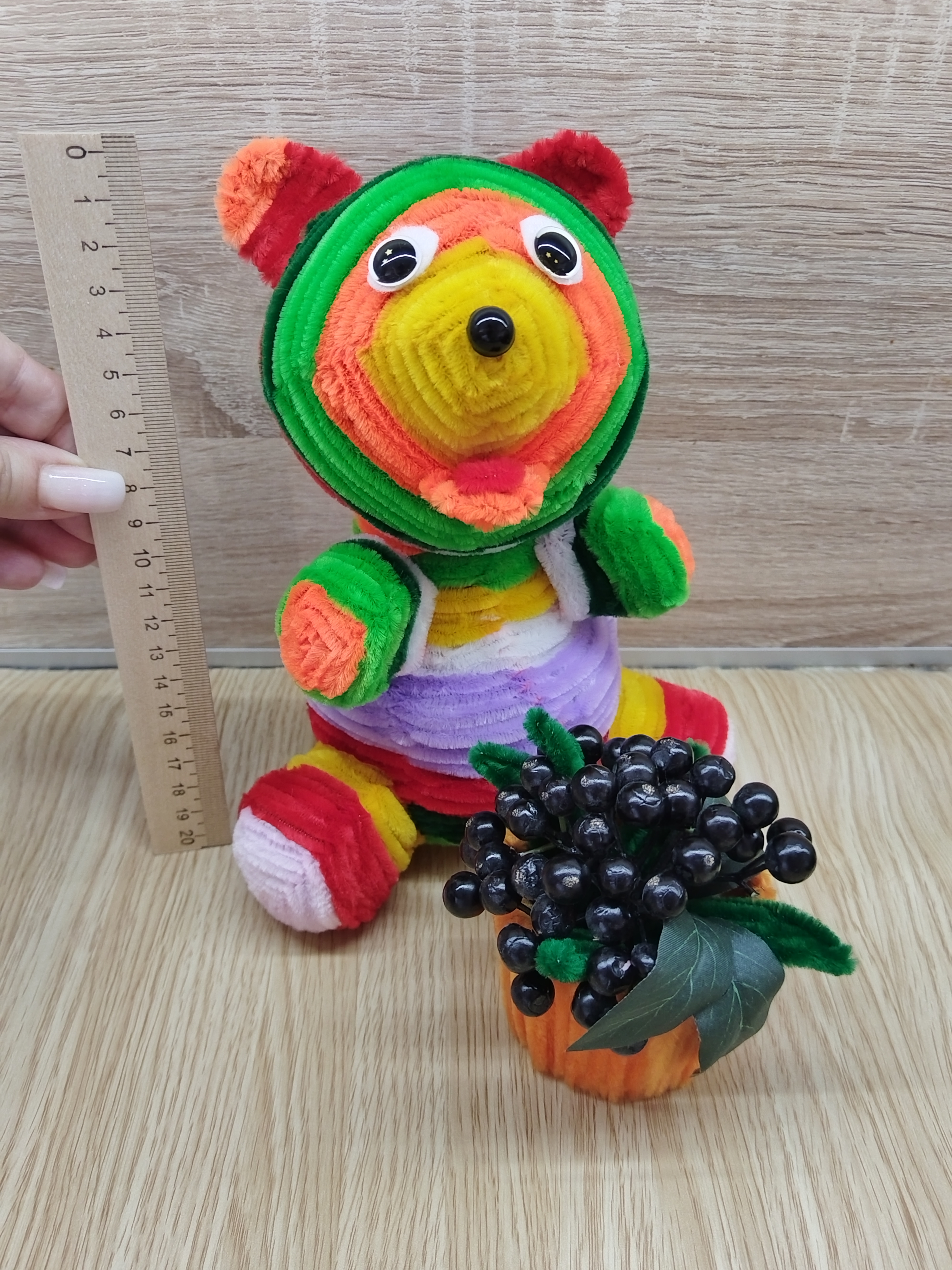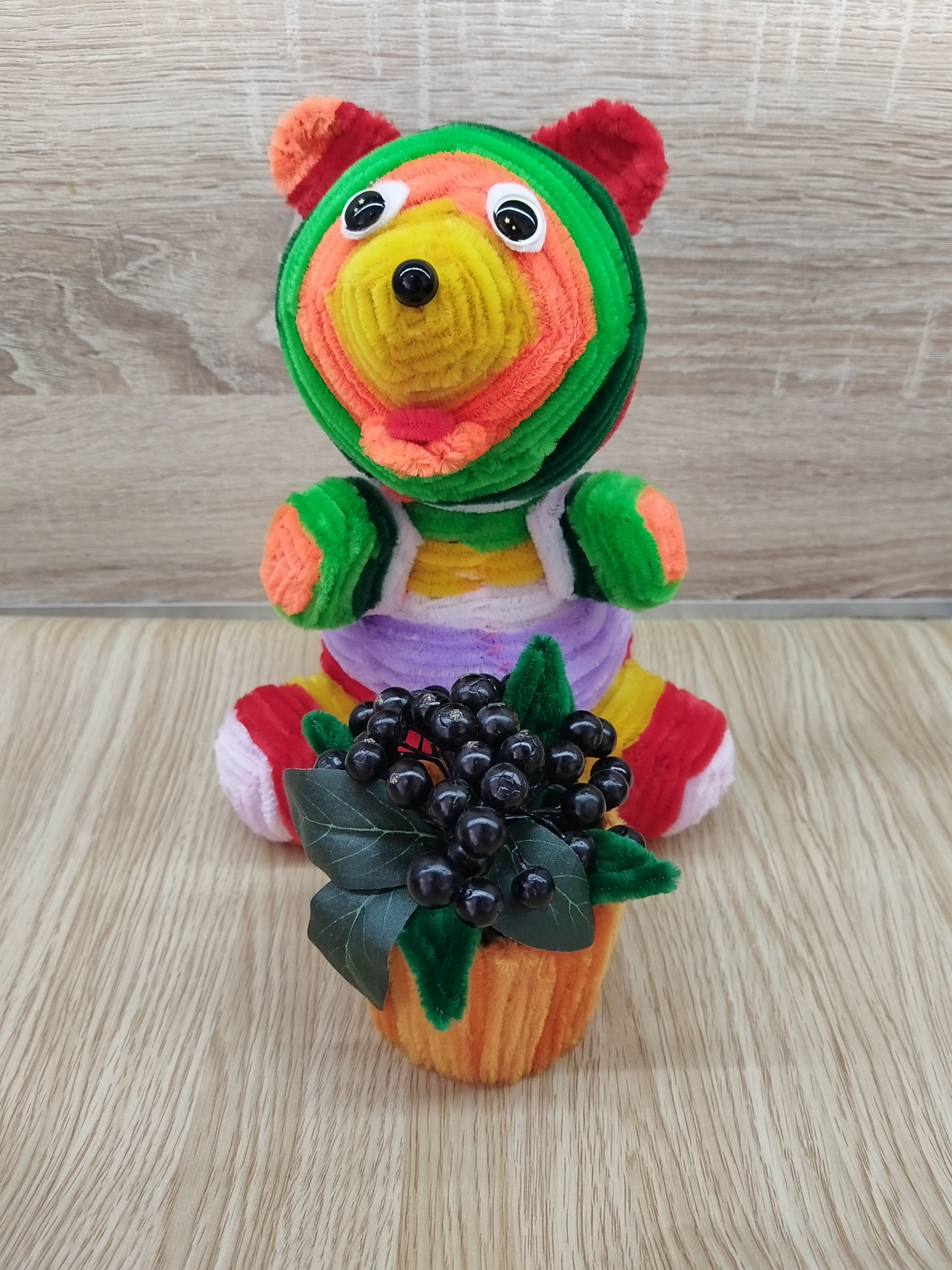 "Радужный медведь с ягодами - символ Пермского края" выполнен из разноцветной синельной проволоки, объемный, высота около 20 см.Данные участника