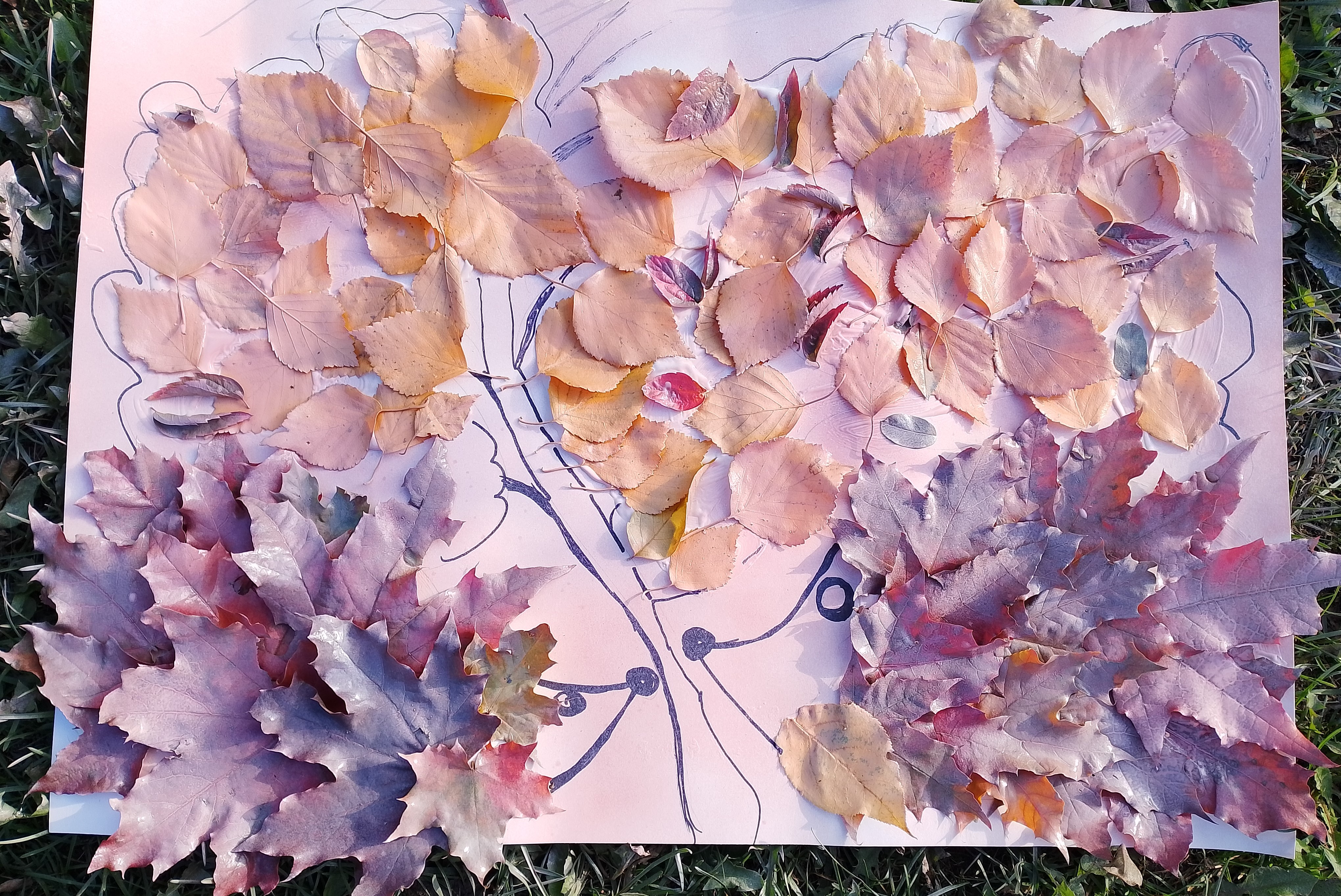 Аппликация выполненная из осенних листьев