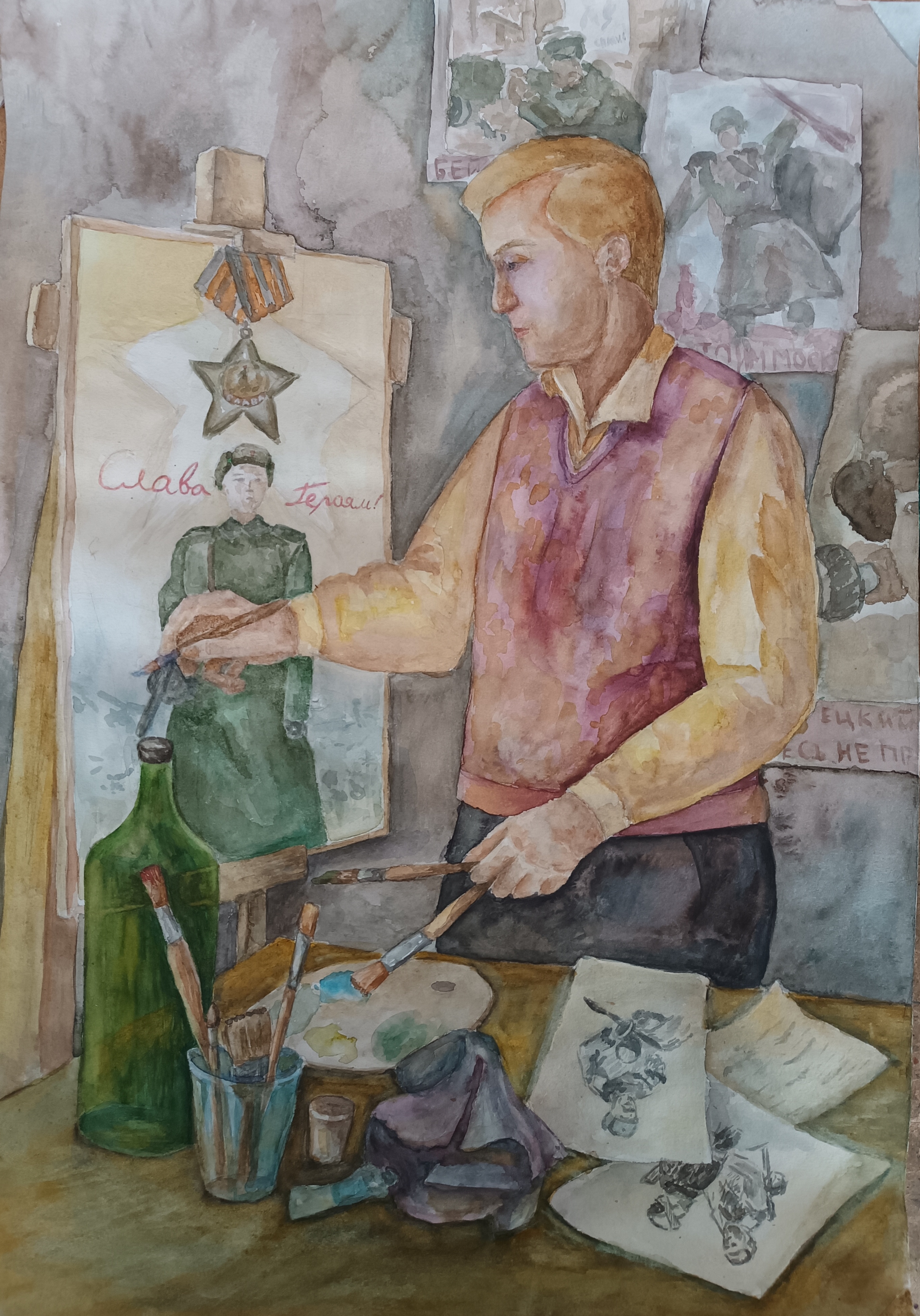 "Оружием нашим были карандаши и краски" 59х42, б., акварельДанные участника
