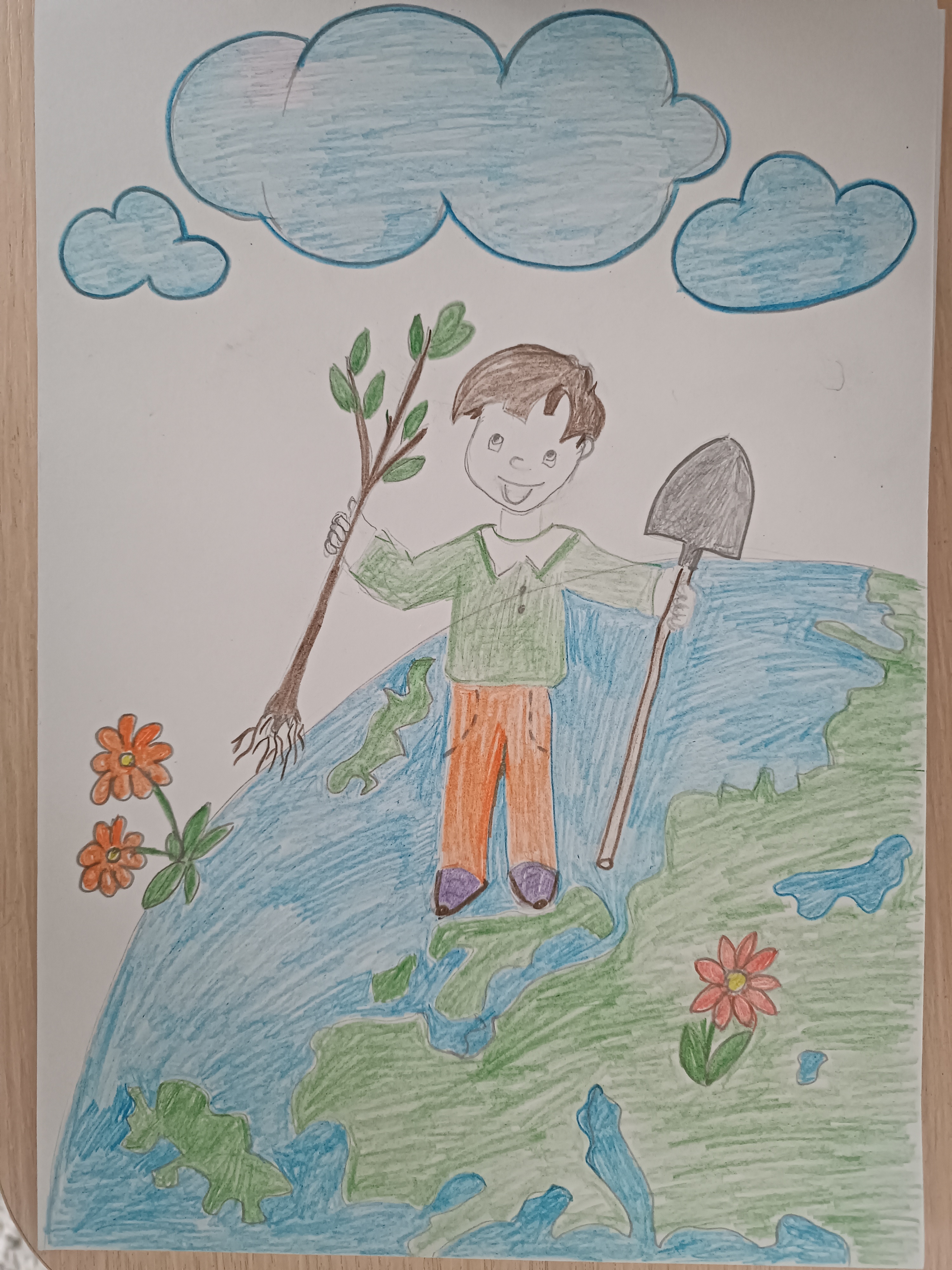 рисунок выполнен простым карандашом и раскрашен цветными карандашами. ребенок рисовал с любовью и душой.Данные участника