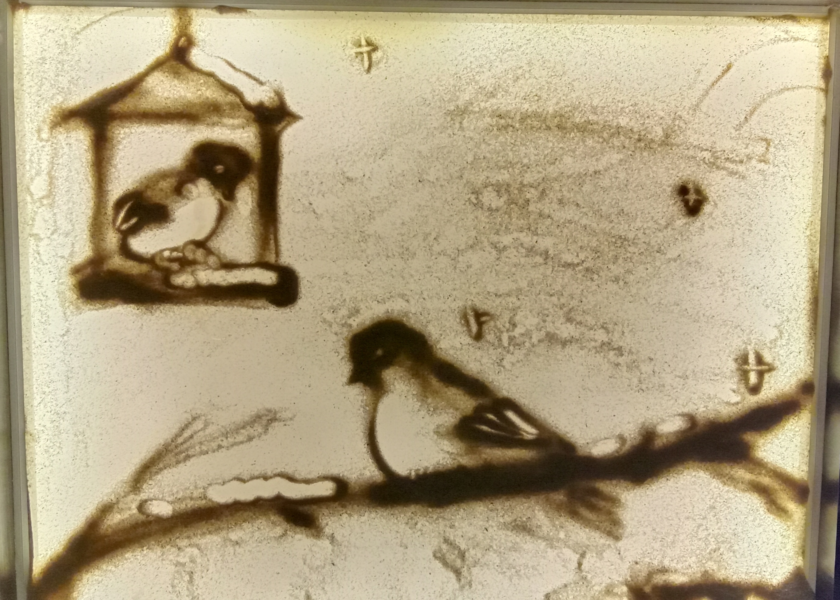 Рисунок выполнен на песке в техниках "Затемнение", "Насыпание", "Процарапывание"Данные участника