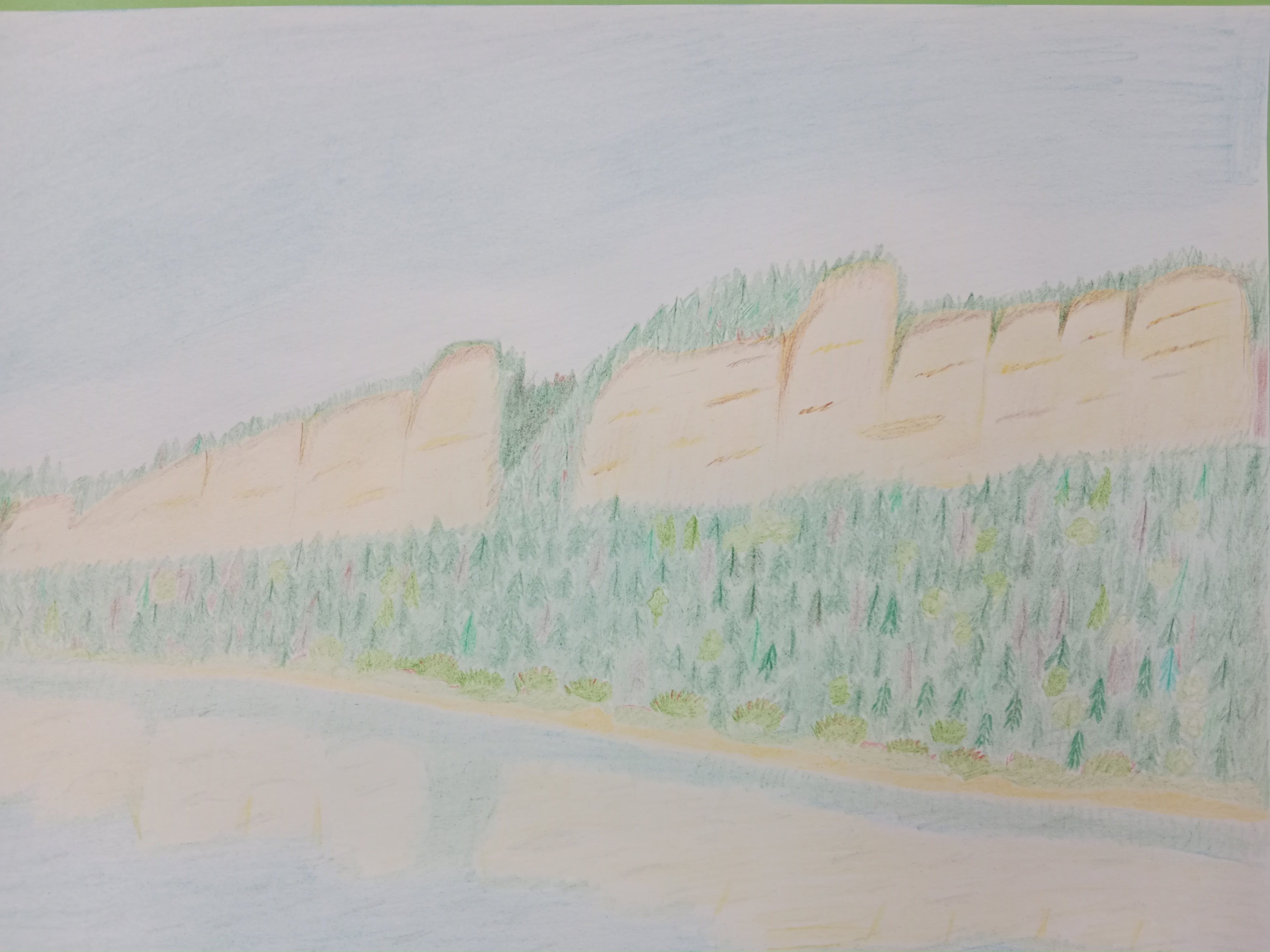 Размер работы лист формата А4. Работа выполнена в технике рисунок цветными карандашами. Какая же неистовая ярость в твоих отвесных скалах, о, Ветлан!Сама природа видно испугалась, создав тебя.Данные участника