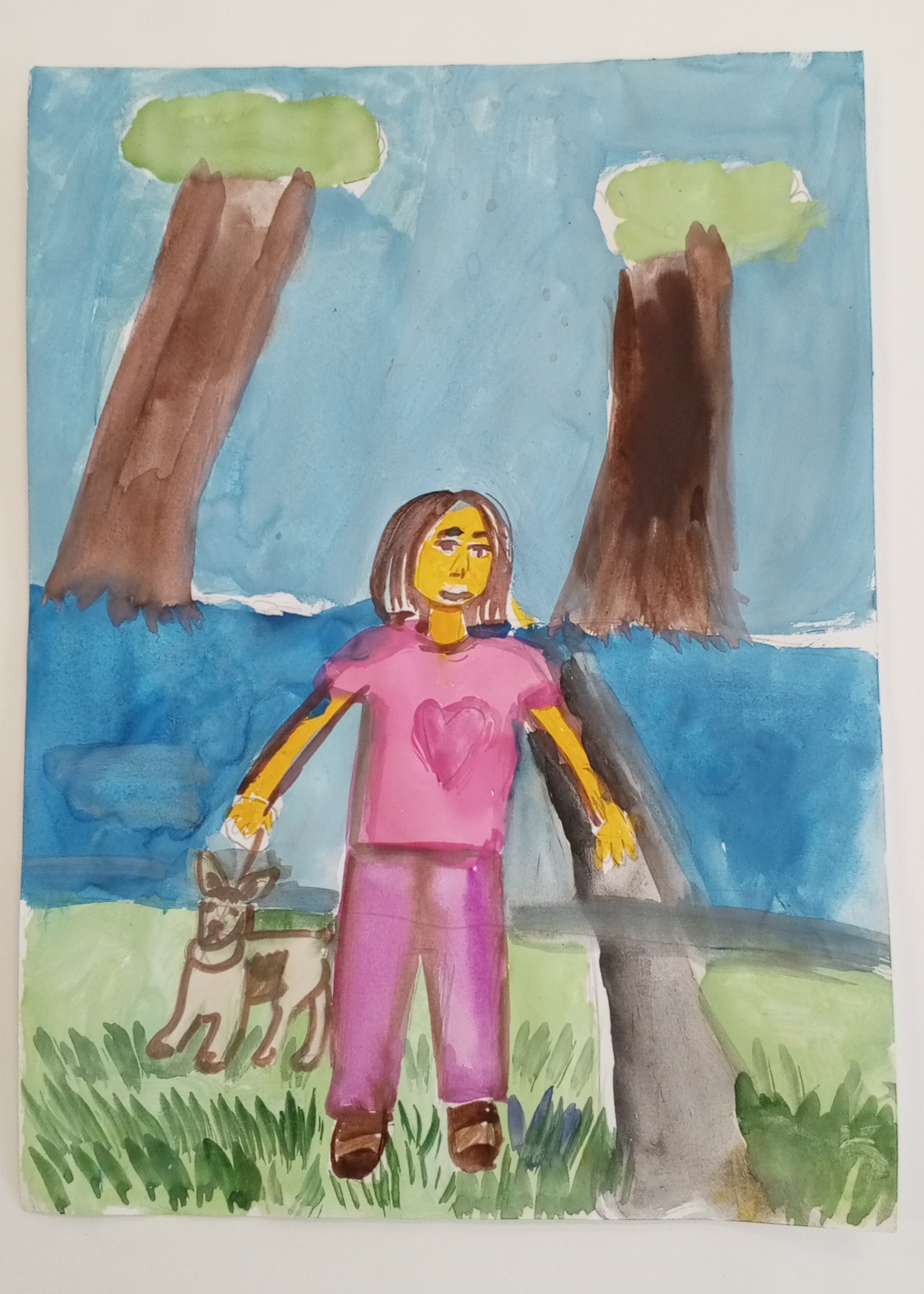 На прогулке дочка с собачкой