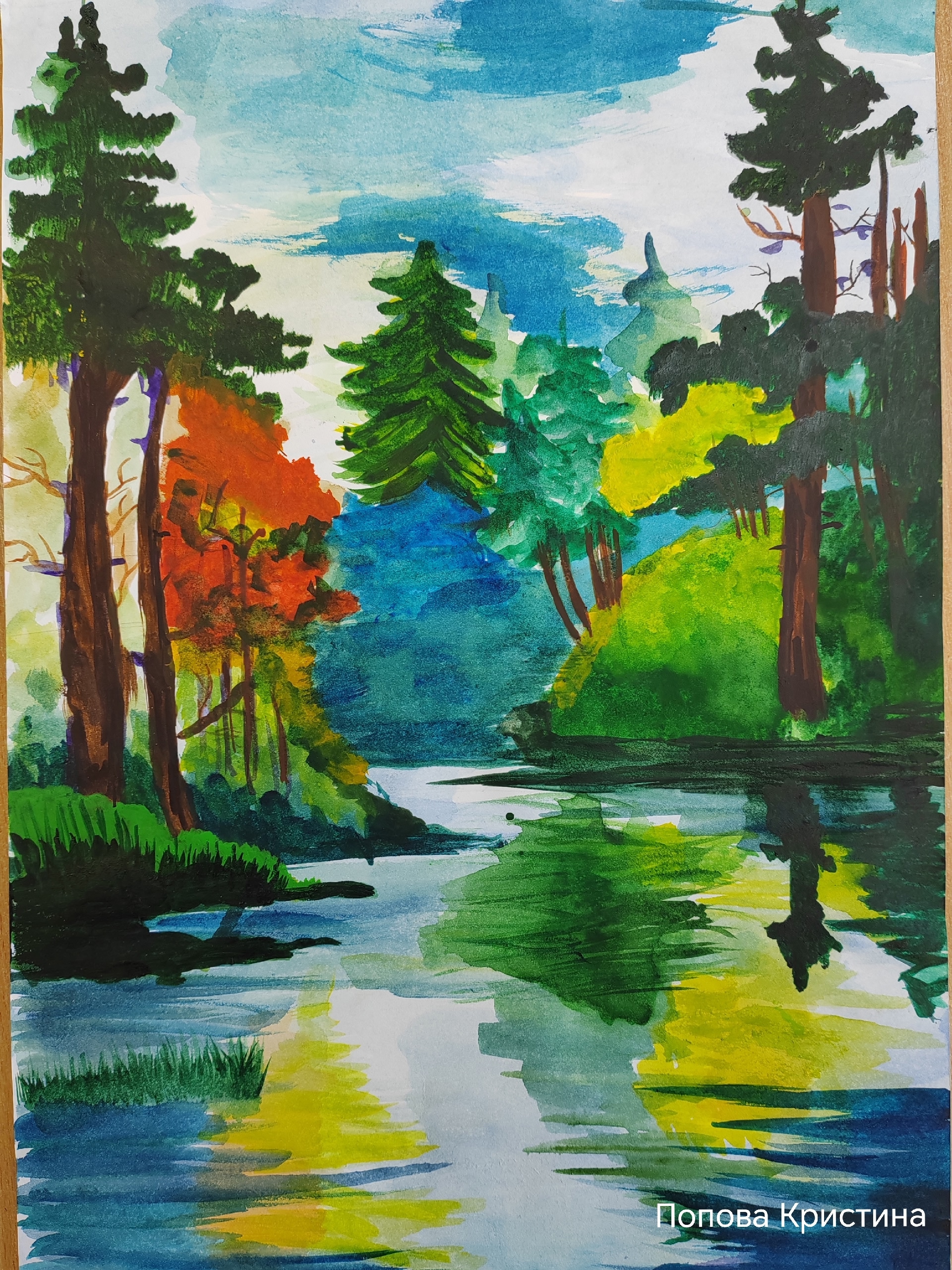 Размер 29,5 х 42 см. Работа выполнена живописно. Гуашь.Данные участника