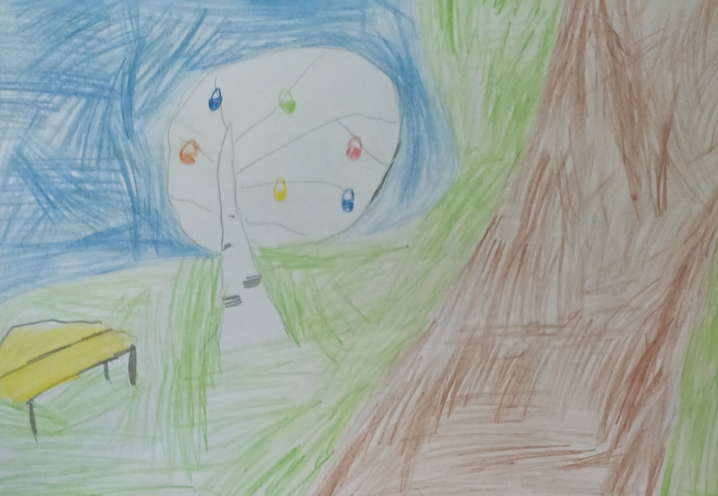 Рисунок выполнен цветными карандашами. На рисунке изображен Пермский парк отдыха.Данные участника