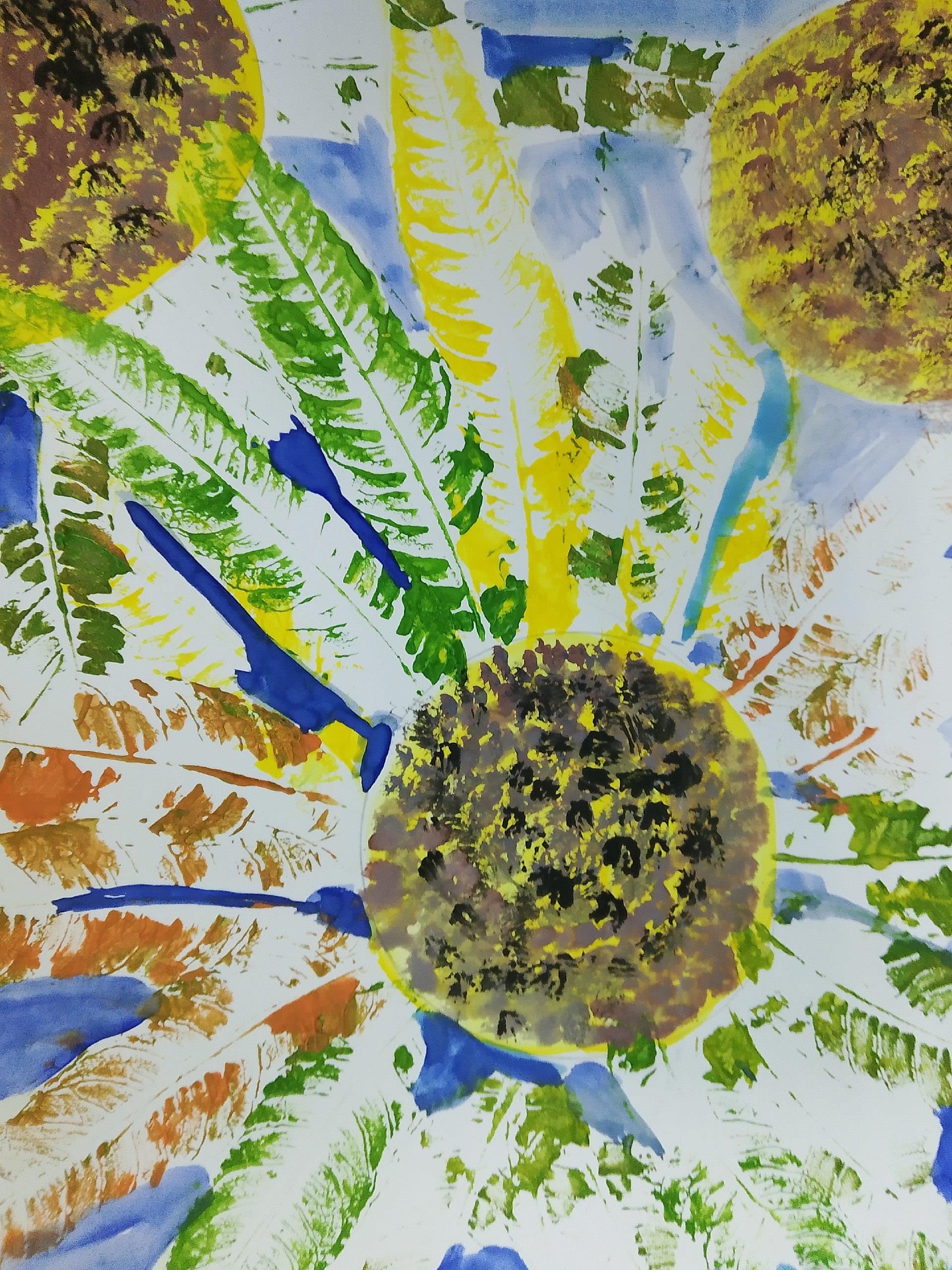 Работа выполнена гуашью с помощью оттисков листьев, формат А4Данные участника