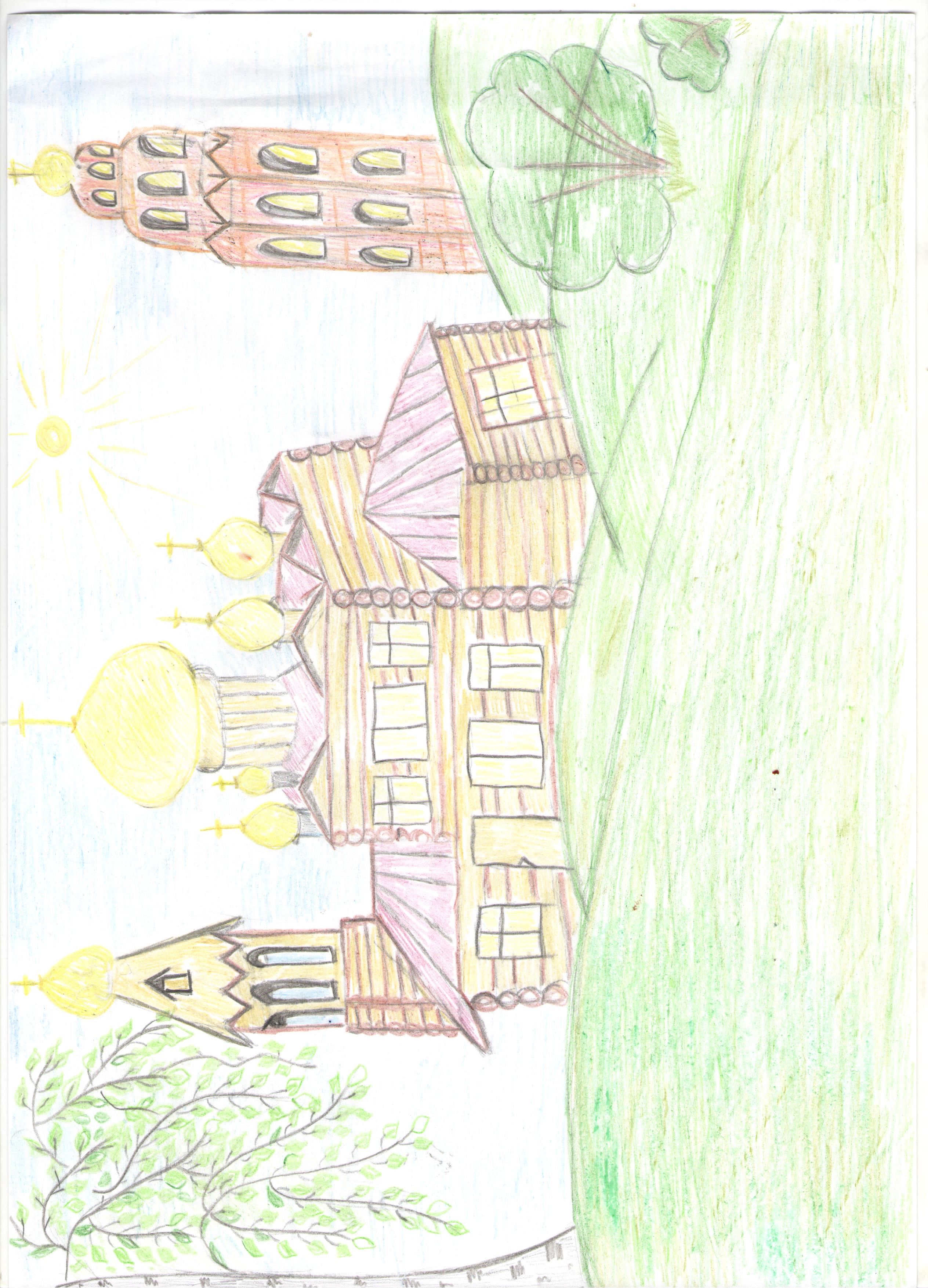 А4, карандаш, рисунок церкви в родном селе ПокчаДанные участника