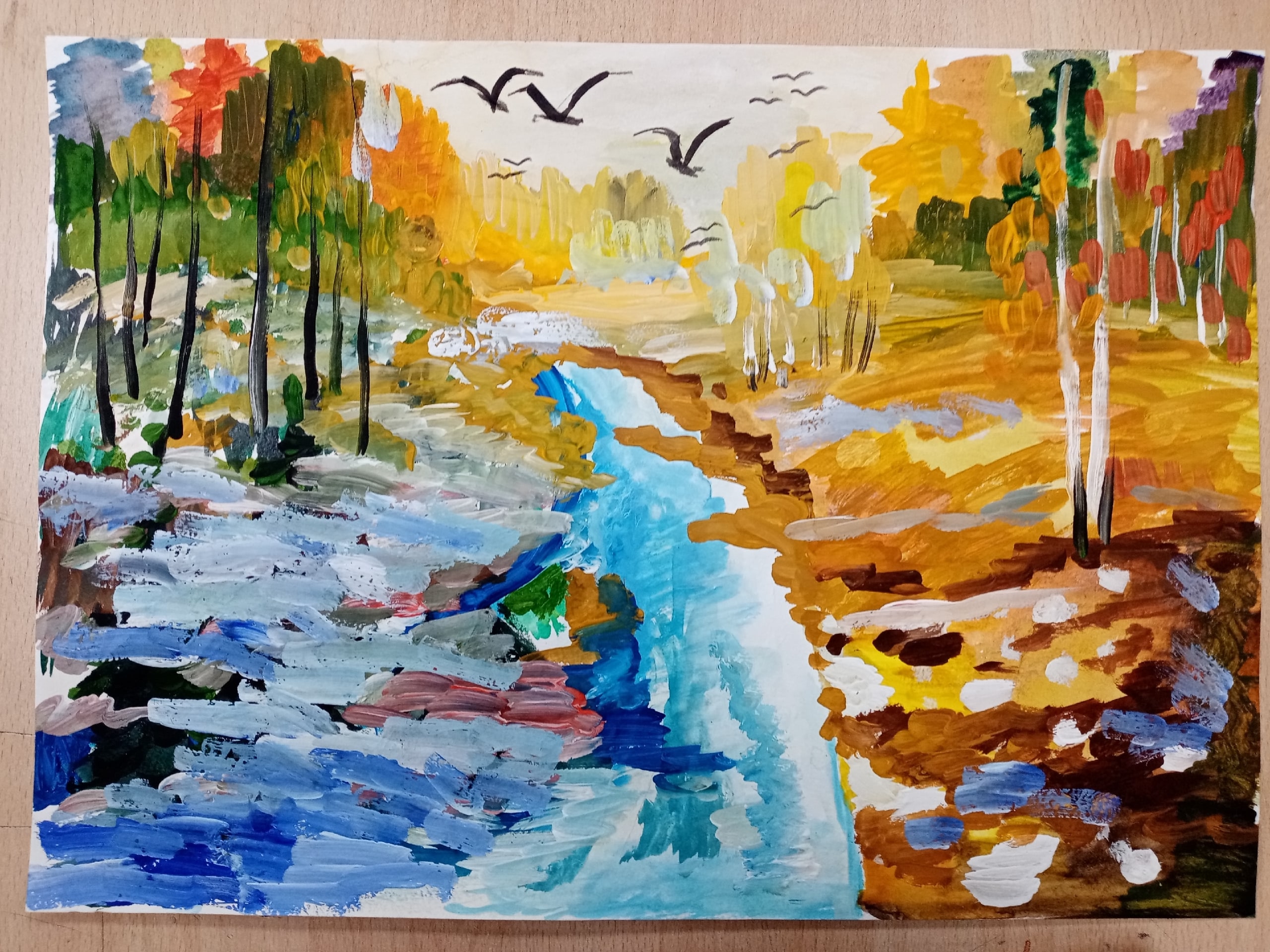 Осенний пейзаж, формат А3, бумага, гуашьДанные участника