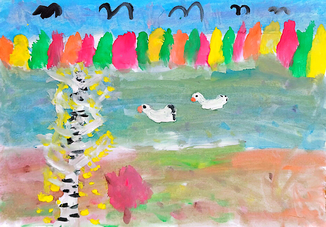 Гуси перед отлётом в последний раз решили поплавать в своём любимом озере.Данные участника