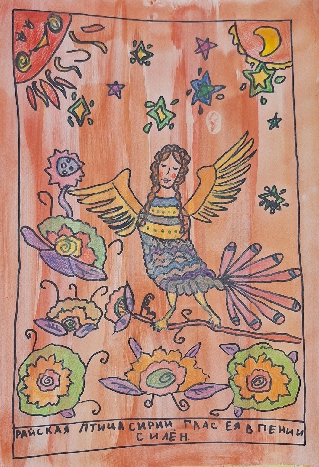 Бумага, акварель, цветные карандаши, чёрный маркер/, техника "Лубок", 42х29Данные участника