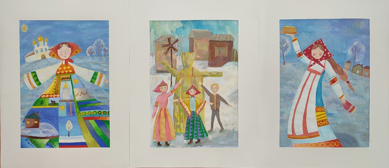 Автор работы через триптих показала широту и яркость праздника Масленица, насколько это масштабные гуляния, веселые и динамичные.Данные участника