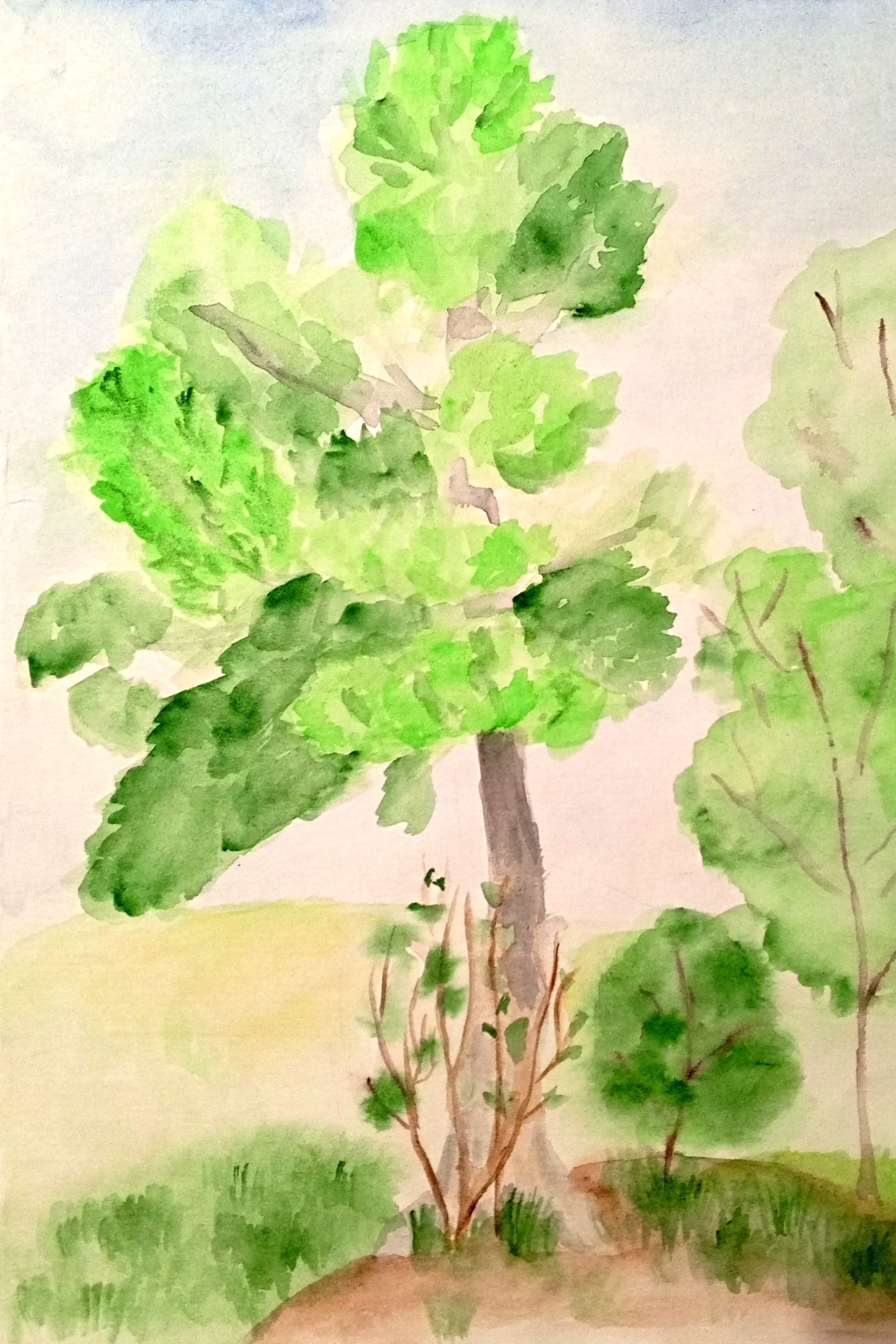 Формат А4. Работа выполнена акварелью, техникой «по сырому» и «от пятна».Данные участника