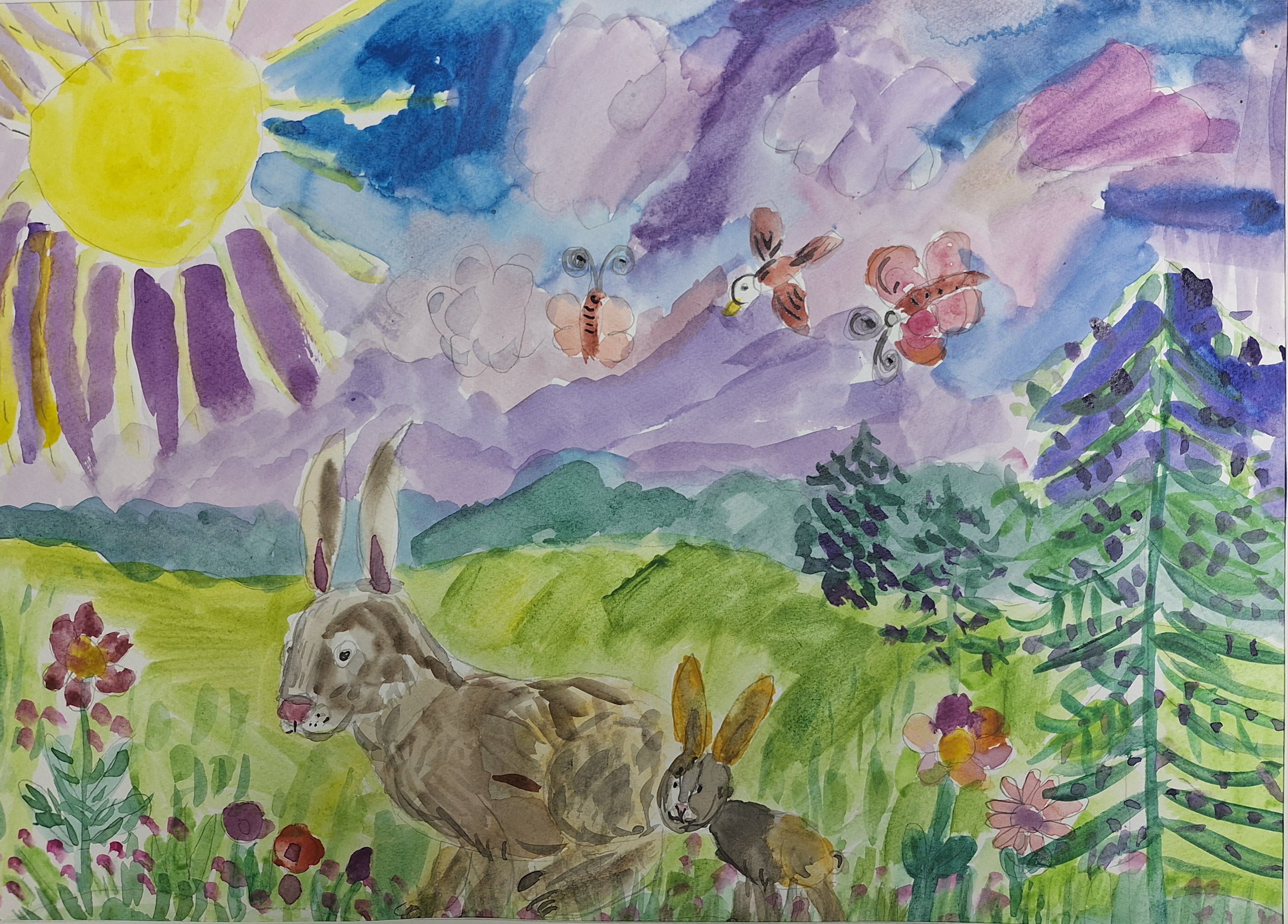 "Зайчата на опушке леса"