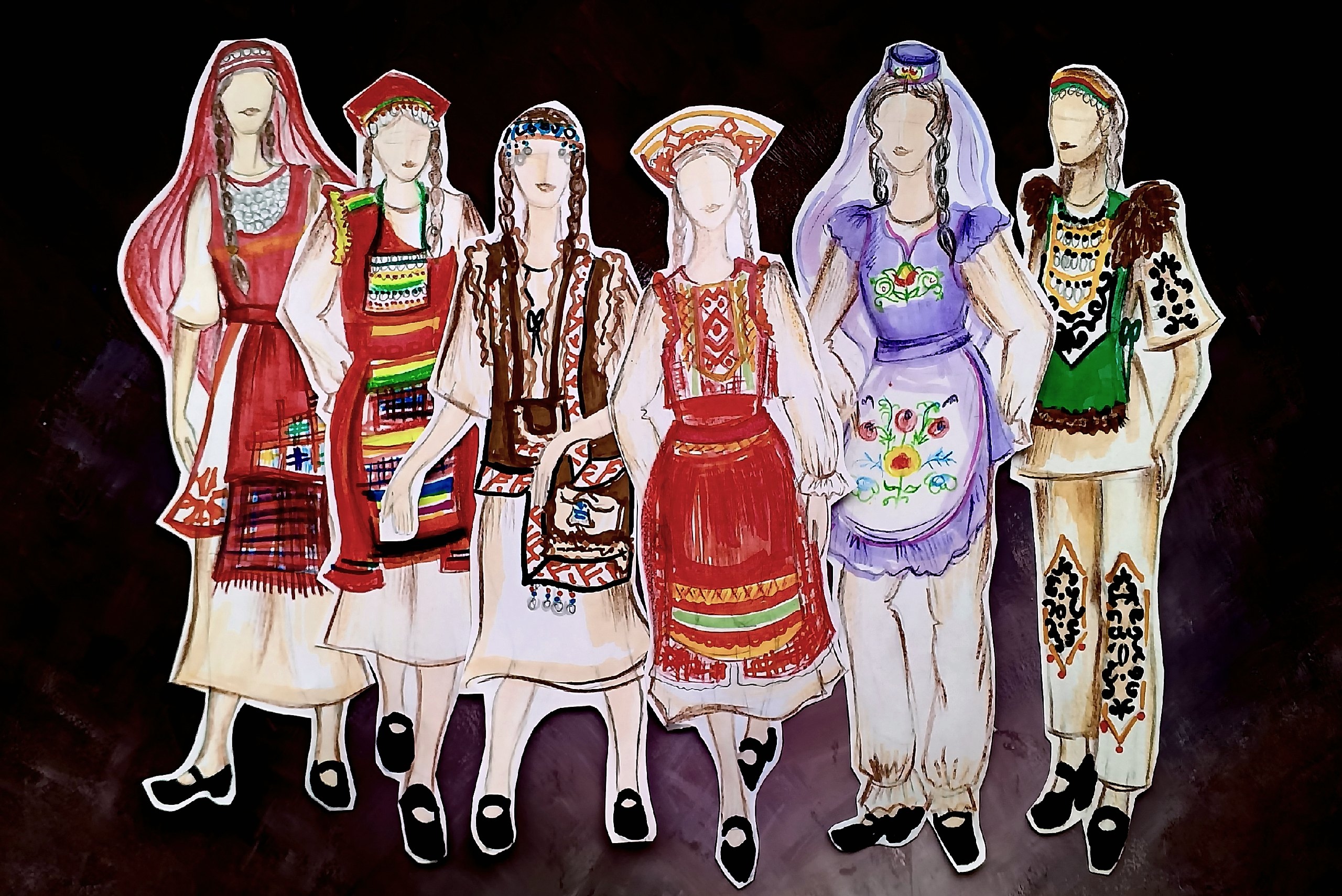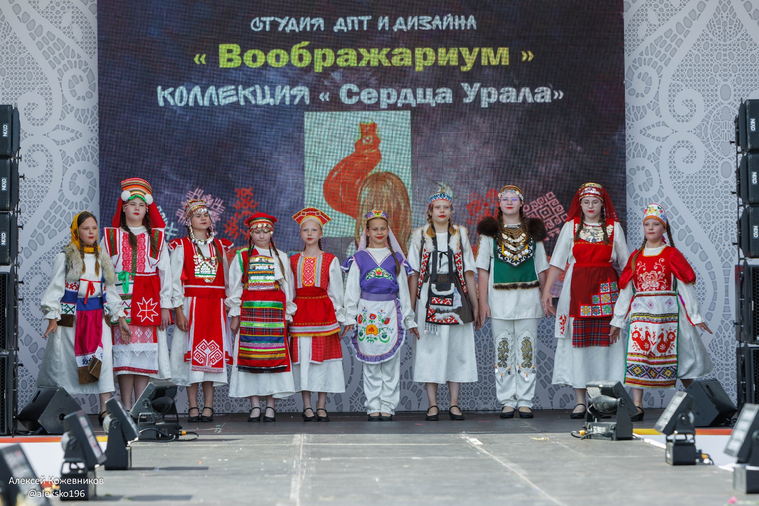В коллекции собраны все самые яркие национальности , которые проживают в Пермском крае и на Урале. Каждый костюм отражает индивидуальность, традиции и эстетику того народа которым наполнен костюм. А вместе народы напоминают одну большую семью, со своими танцами, музыкой объединённые на Урале и в Пермском крае. В одном номере , бьётся 10 сердец, 10 национальностей , а за ними миллионы людей. В основу взят белые костюмы, белые полотна , по верх которых изображён целый народ. В каждой модели отражение своего народа , через детали национального костюма . В коллекции сочетается различные ткани, фактуры с элементами росписи по ткани. А так же ленты , тесьма, кружево и другие материалы.Данные участника