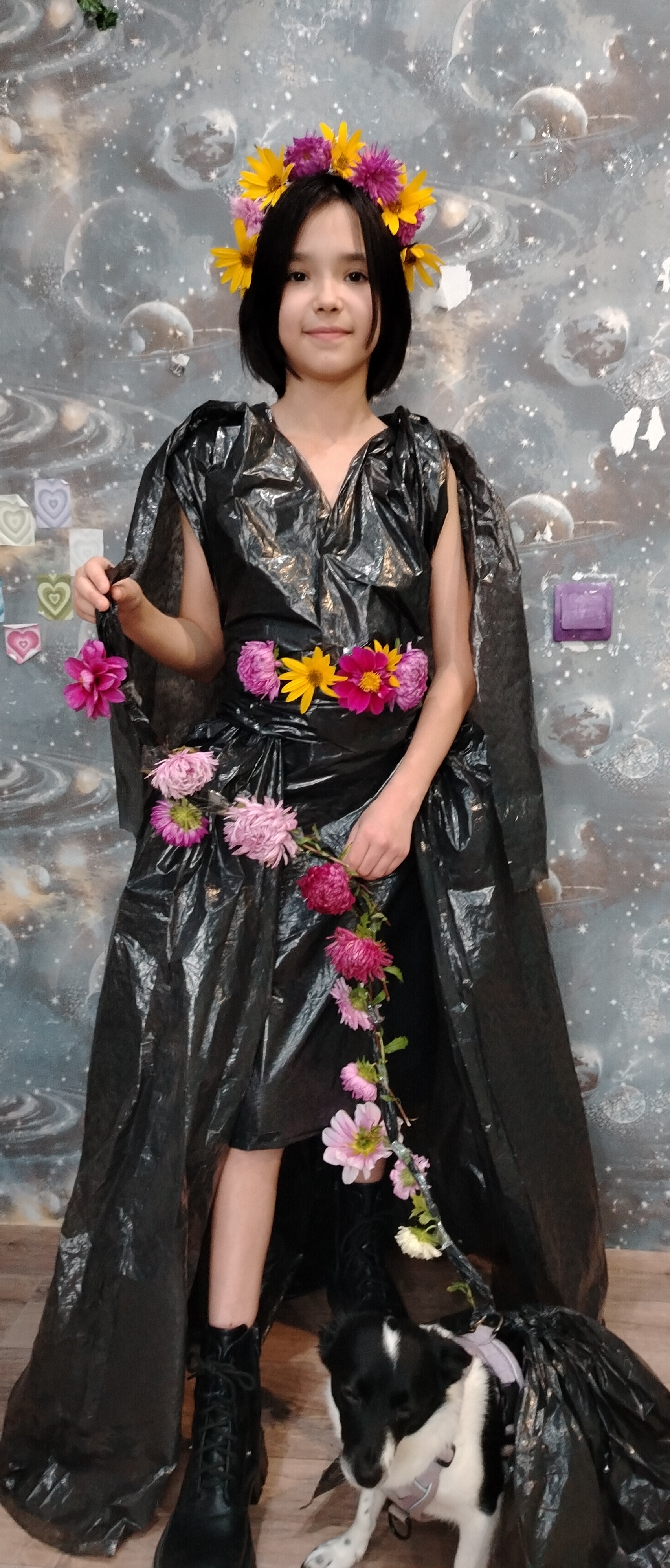 Материал пакеты, живые цветы. Мне помогла наша милая собачка МарсиДанные участника