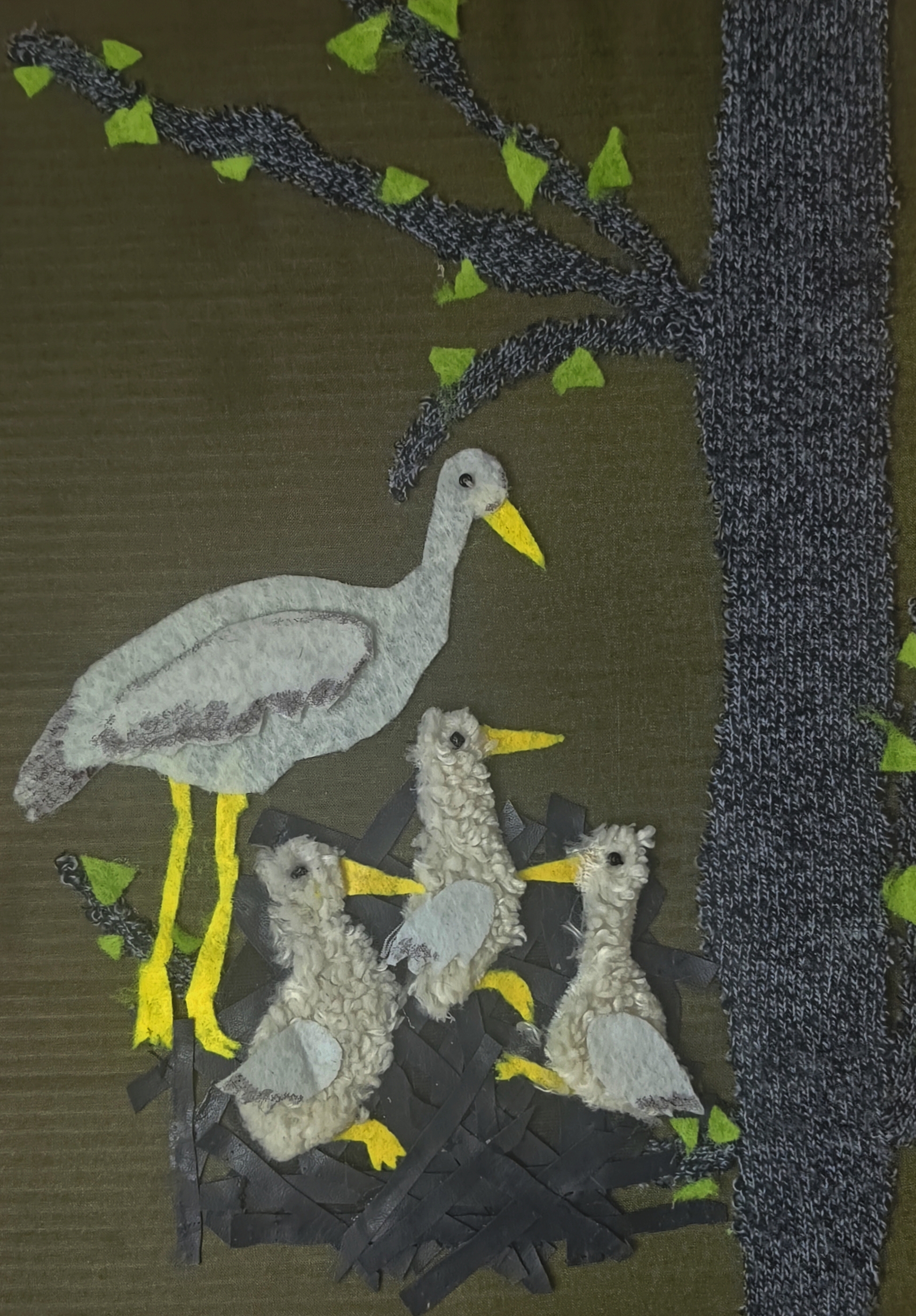 Работа выполнена в технике аппликация из ткани размер работы 21 * 30Данные участника