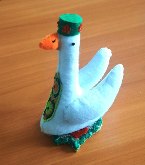 Техника изготовления поделки "Бардымский гусь" из фетра включает работу с выкройкой и пошив деталей, высота - 15 смДанные участника