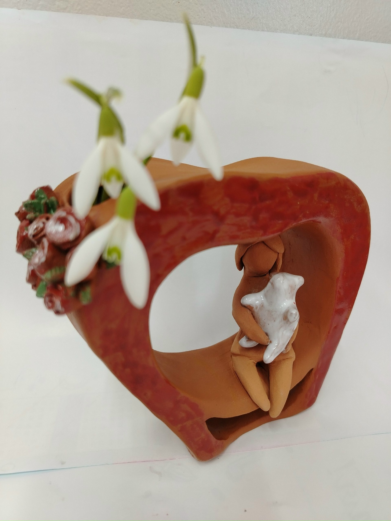 Керамика, ручная формовка из пласта, глазури. В этом году исполняется 100 лет Куединскому району. Ваза выполнена в форме стеллы, посвященной посёлку. На скамейке я изобразила девочку с игрушкой медведем. Это место всегда очень многолюдное, летом там высаживают цветы, поэтому мне захотелось сохранить о нем память в своей работе.Данные участника