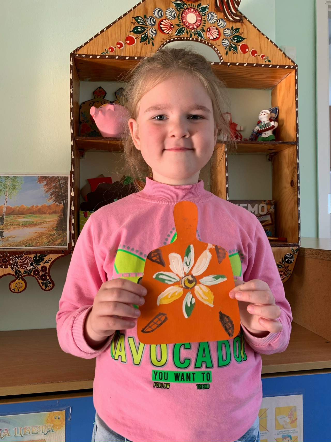 Обвинская роспись выполнена на разделочной досочке гуашью.Данные участника