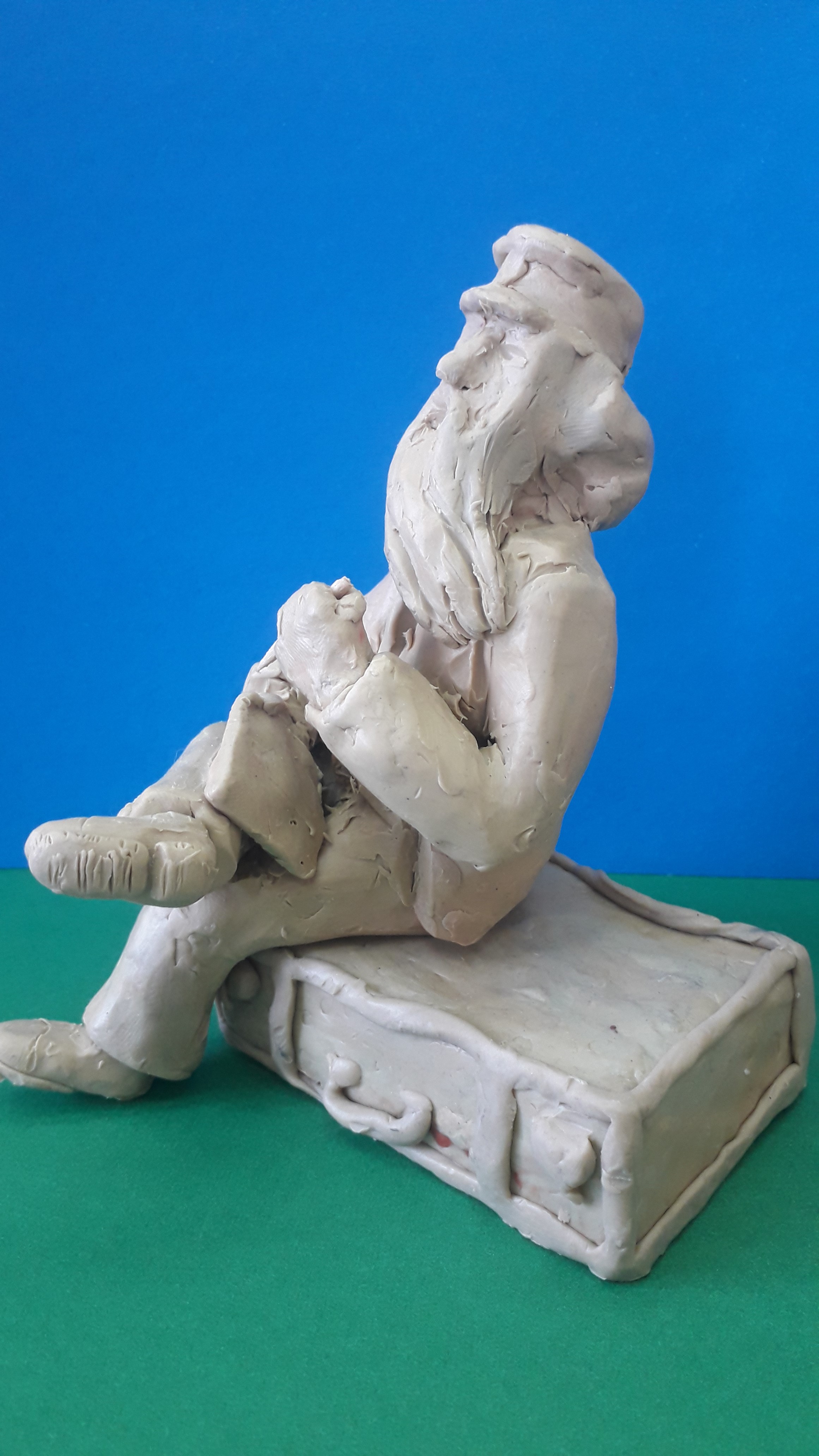 "Художник В.В.Верещагин в ожидании поезда" скульптурный пластилин, 13 см.