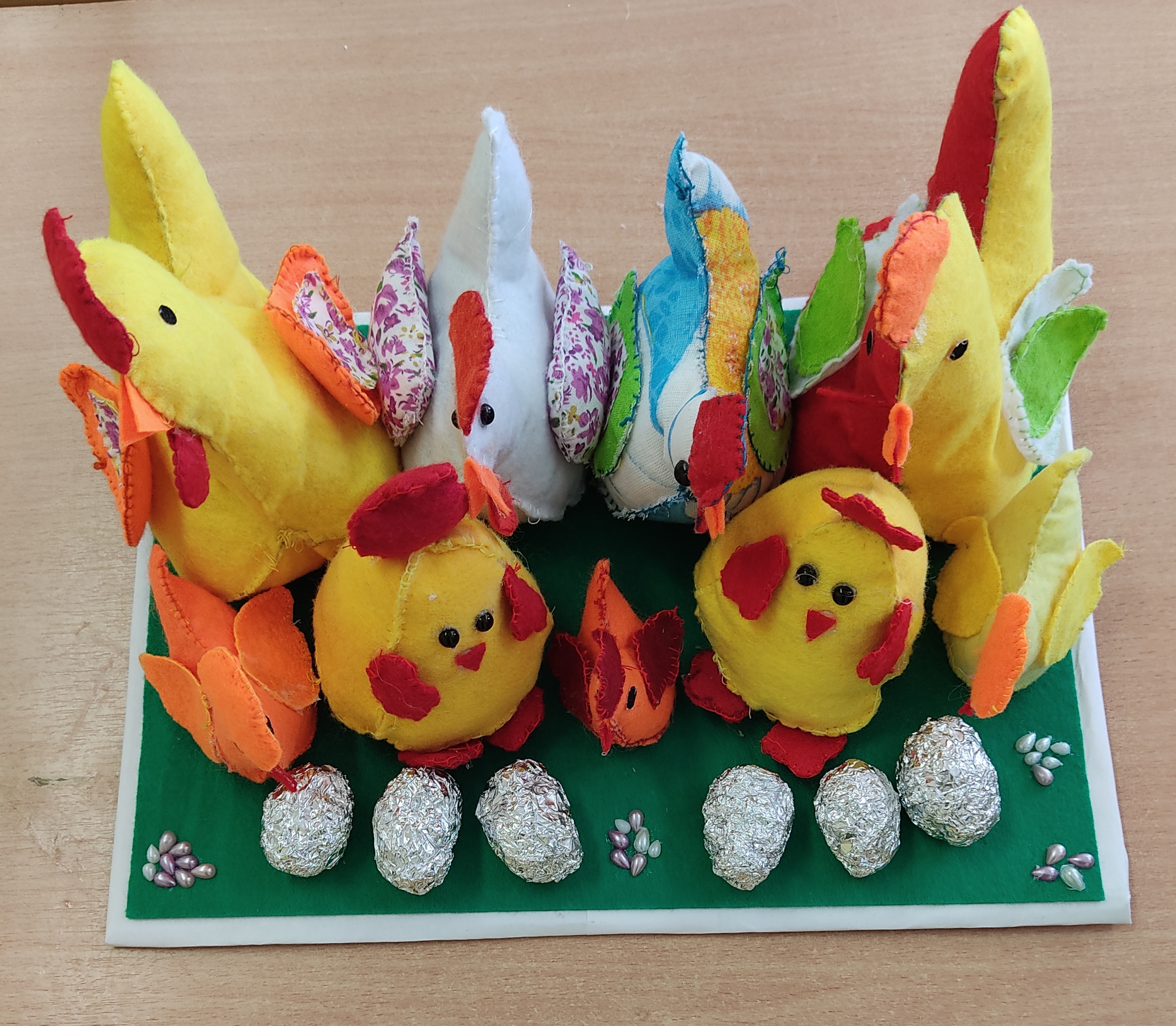 Размер работы: 35:20:20, композиция выполнена из фетра и ткани, в технике "Игрушки из ткани"Данные участника