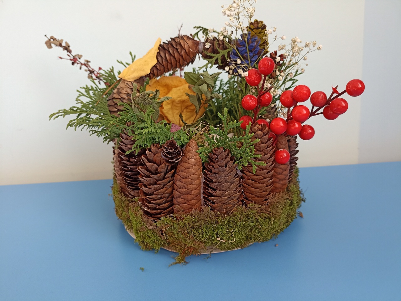 Корзинка из шишек – интересная поделка из природного материала. Мне всегда было приятно работать с природным материалом. Особенно нравится заготавливать материалы. Шишки я собираю все подряд, а потом уже начинаю отбирать по размеру и рисунку. Корзинка получается необычная.В такой корзине красиво будут смотреться фрукты, грибы и даже цветы.Данные участника