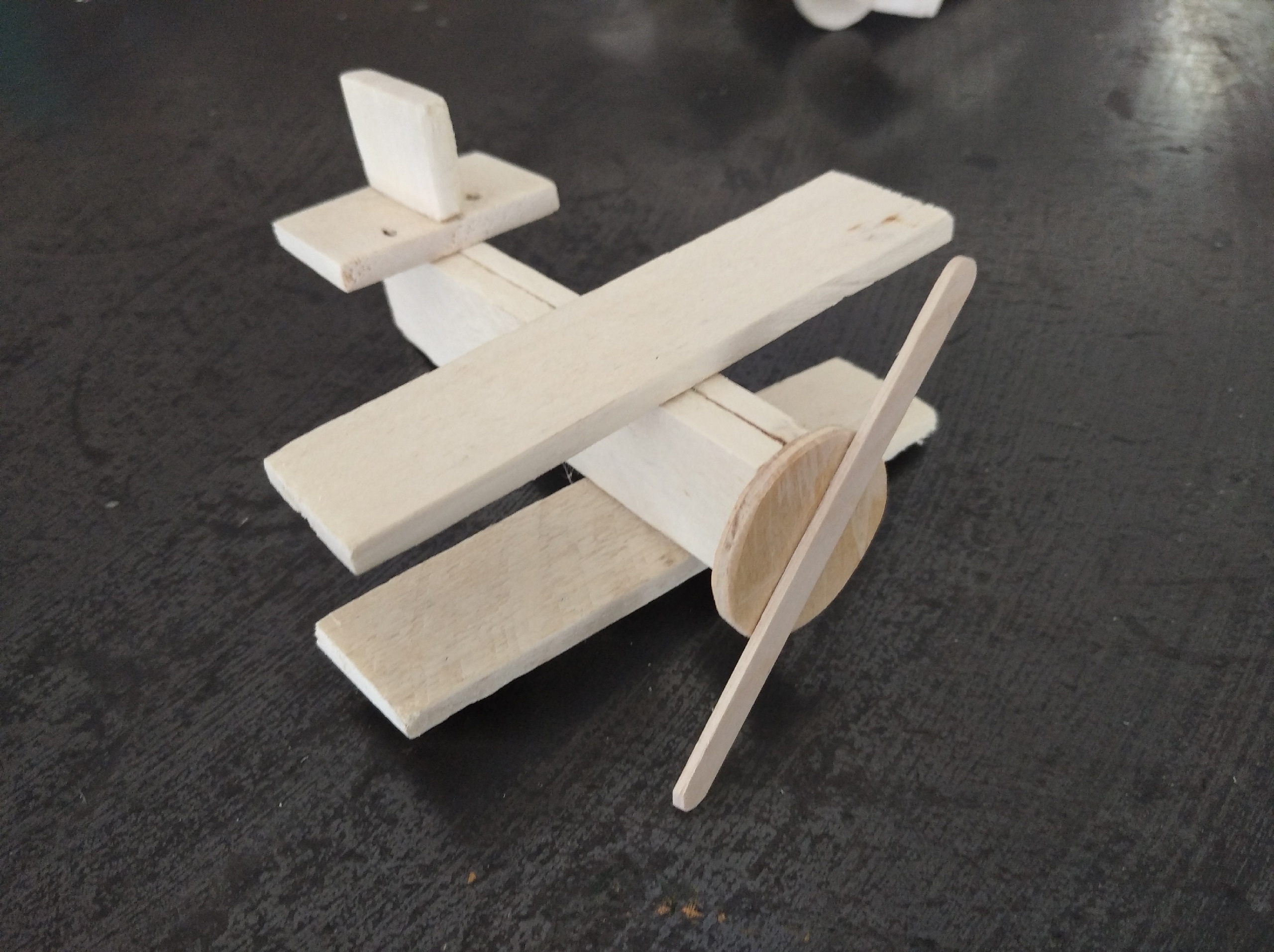 Самолет выполнен из древесины, размер самолета 15 см, покрытие - акриловый лак.Данные участника