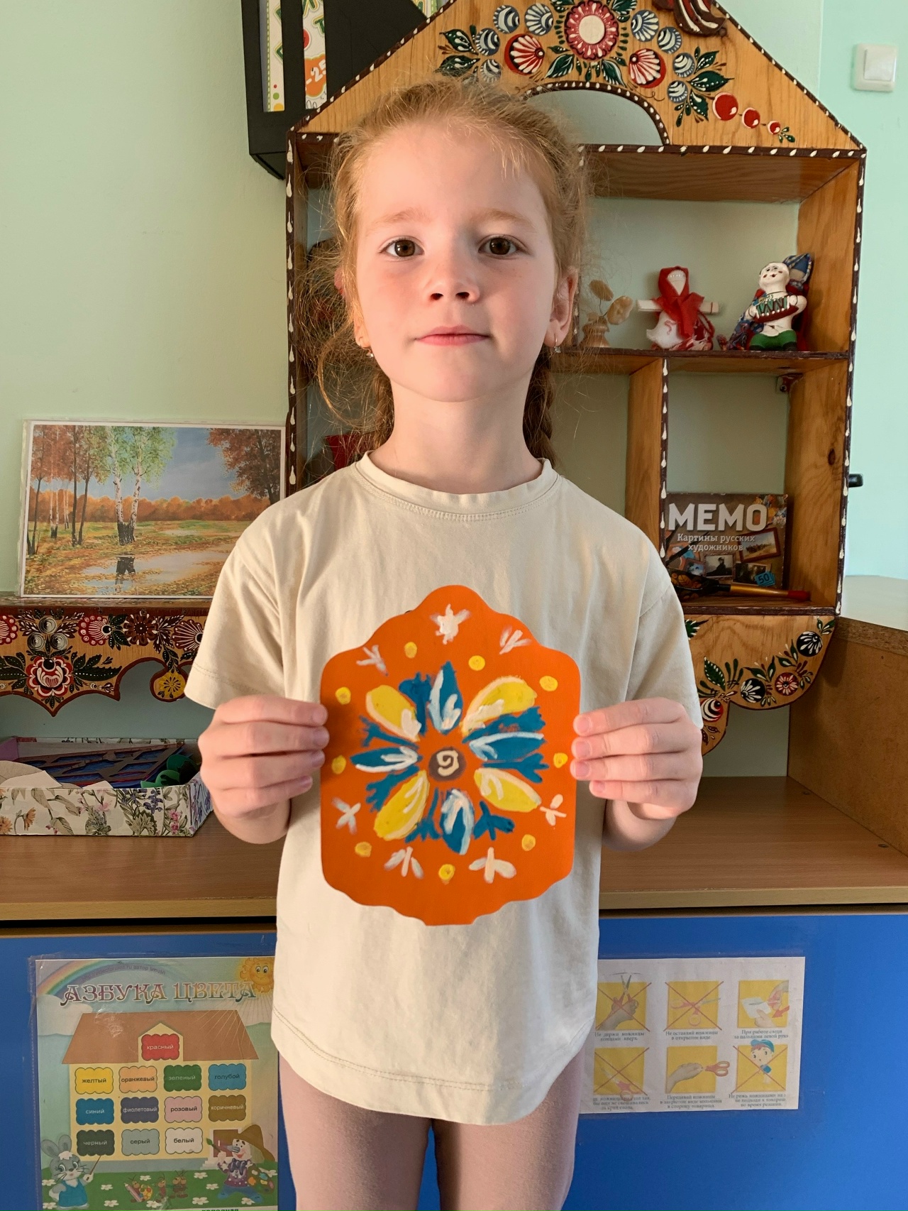 Обвинская роспись сделана на картонной заготовке в виде прялкиДанные участника