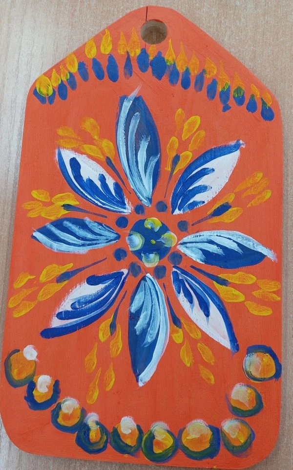 Лев в прошлом году посетил музей древнерусского деревянного зодчества «Хохловка», расположенный близ Перми, где его внимание привлекла традиционная русская домовая роспись. Увлекшись этим искусством, Лев продолжил изучать технику русской народной живописи совместно с преподавателем группы, также увлечённым данным направлением. Их совместные усилия нашли отражение в оригинальной поделке, представленной работой «Обвинская живопись на деревянной поверхности". Эта работа демонстрирует характерные черты обвинской росписи, одной из региональных школ народного искусства, распространённой в Пермском крае. Роспись выполнена яркими красками с использованием традиционных орнаментов и мотивов, характерных именно для обвинских мастеров XIX века. Тщательно проработанные узоры и плавные линии подчёркивают мастерство исполнителя и передают дух традиционной деревенской культуры России.Данные участника