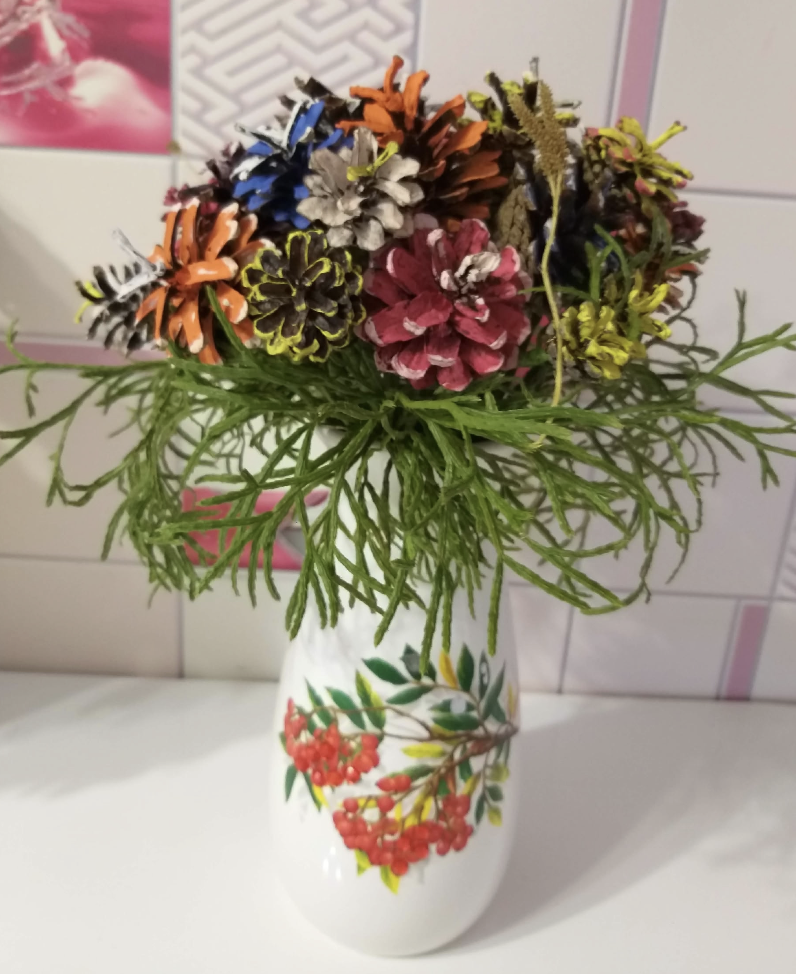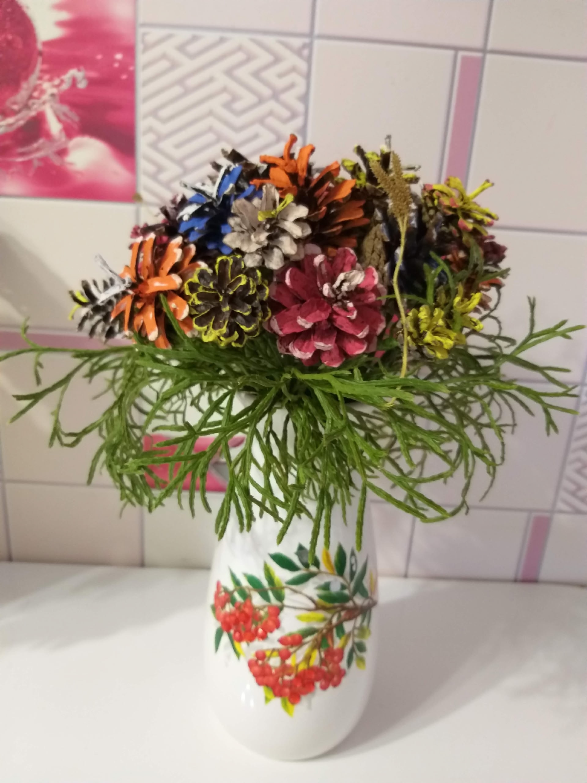 Осенний букет выполнен из природного материала и гуаши.Данные участника