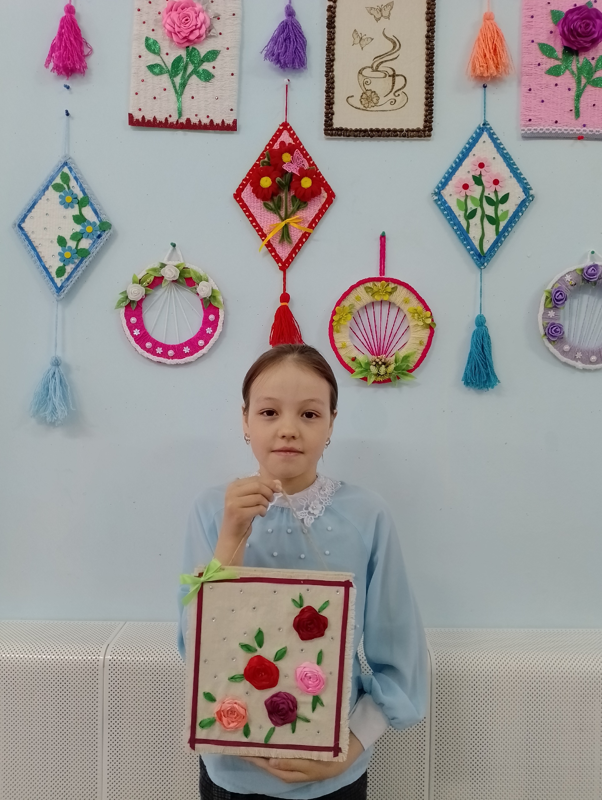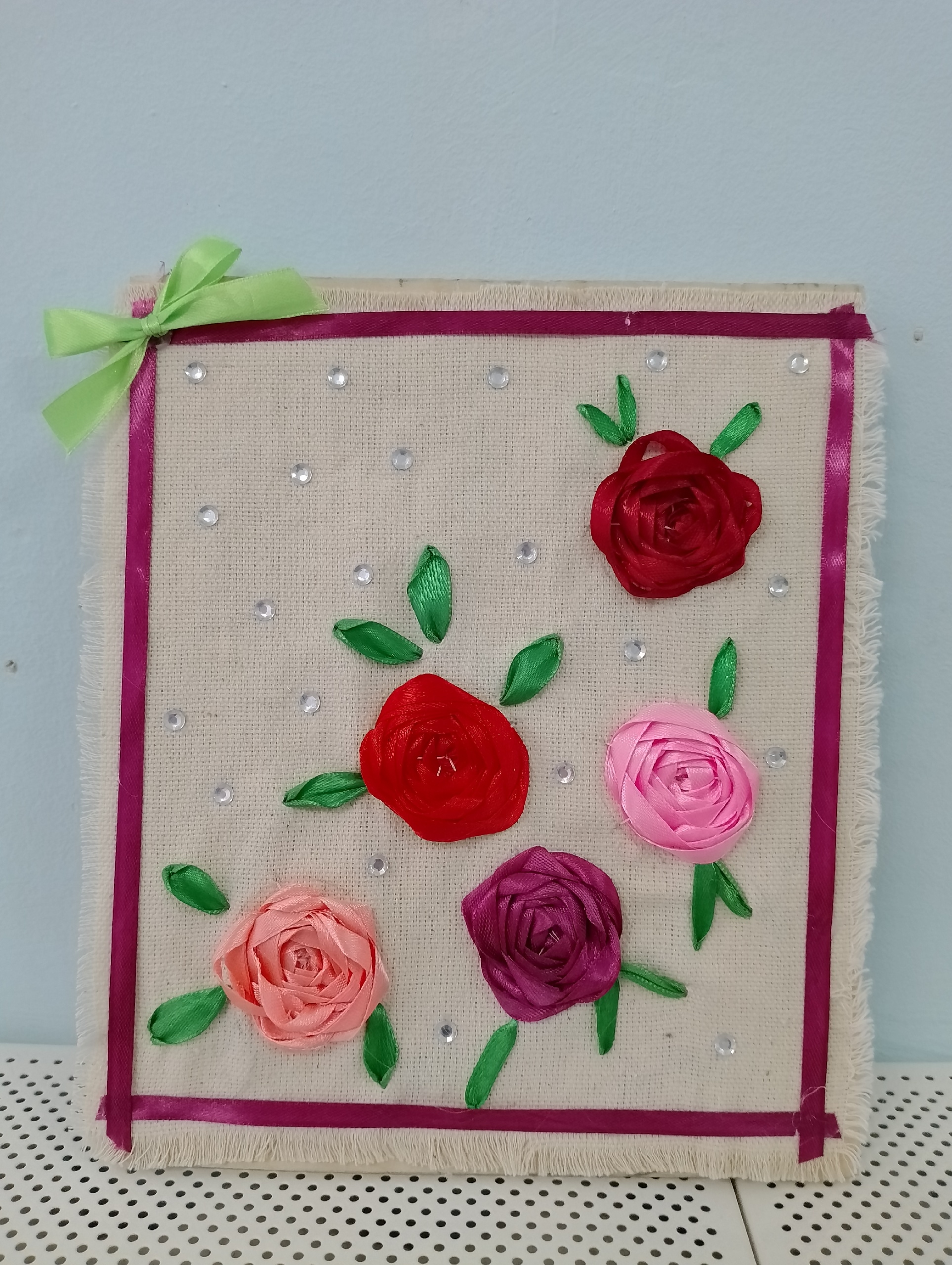 Размер 18*20, работа выполнена в технике вышивки лентами.Данные участника