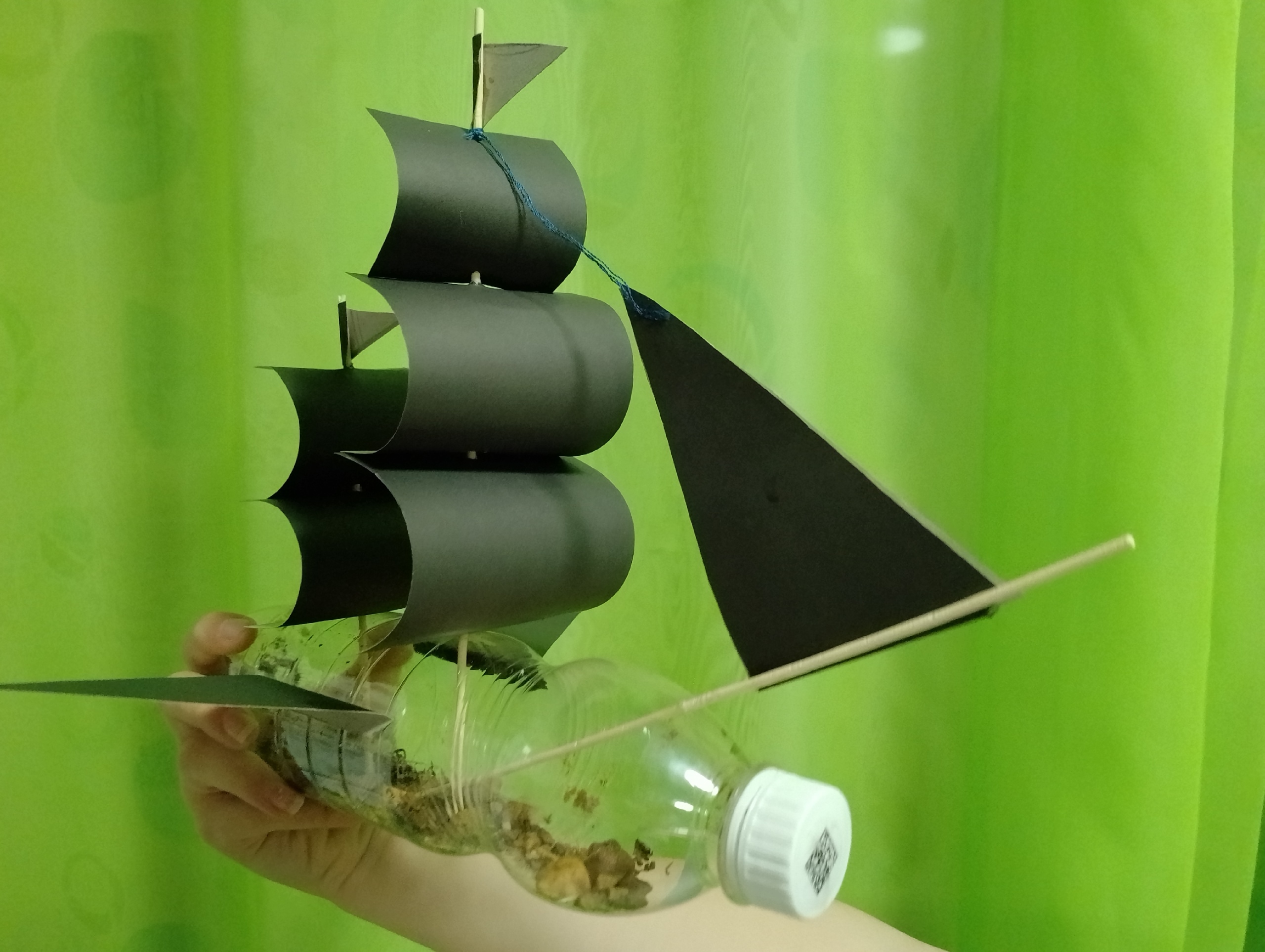 Работа выполнена с использованием бумаги и бросового материала.Данные участника