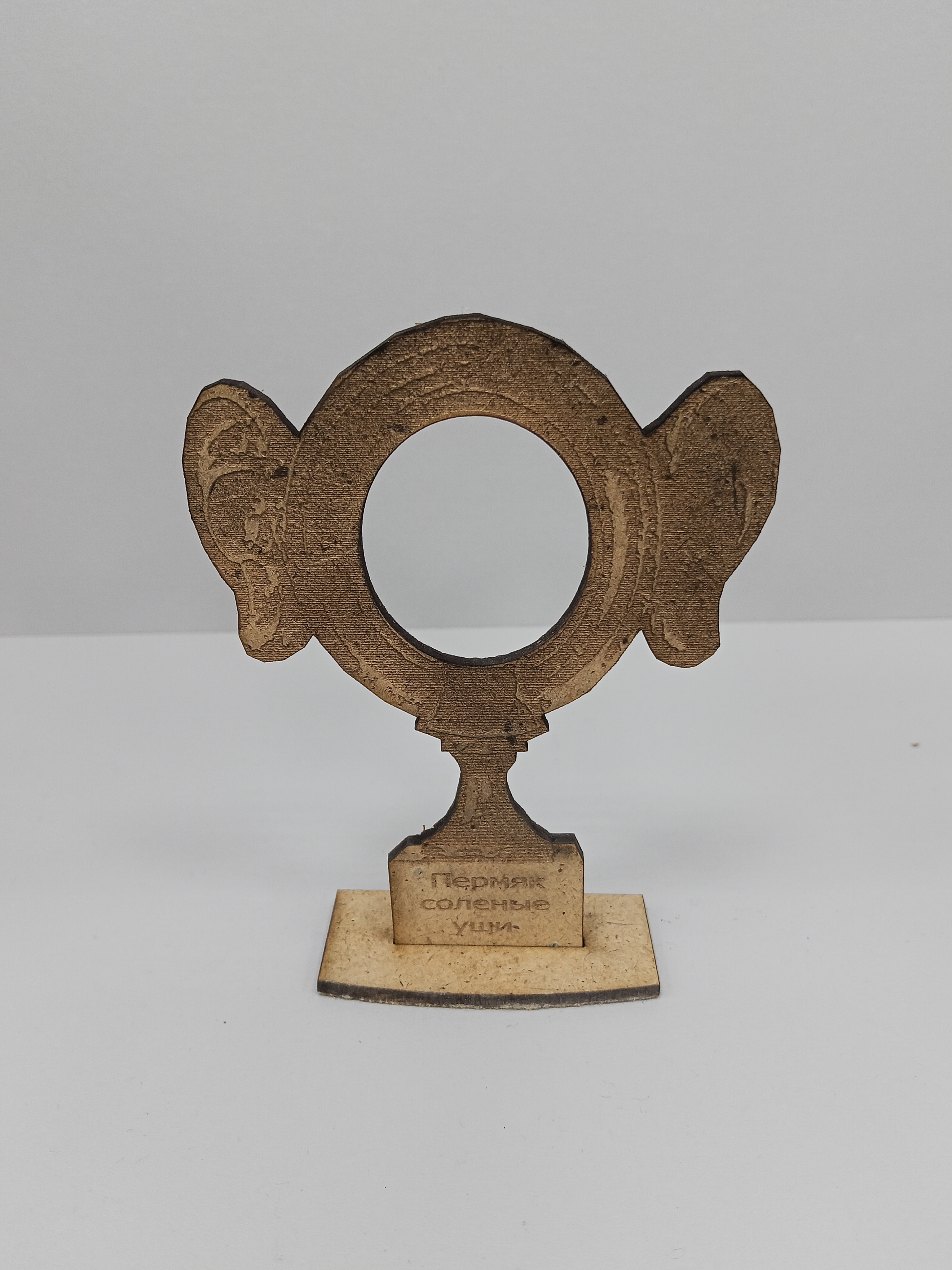 Это изделие представляет собой декоративный элемент, изготовленный методом резки из листового материала — древесноволокнистой плиты средней плотности (ДВП). Форма изделия по художественному замыслу участника выполнена в виде жанровой городской скульптуры, которая является достопримечательностью Перми.Данные участника
