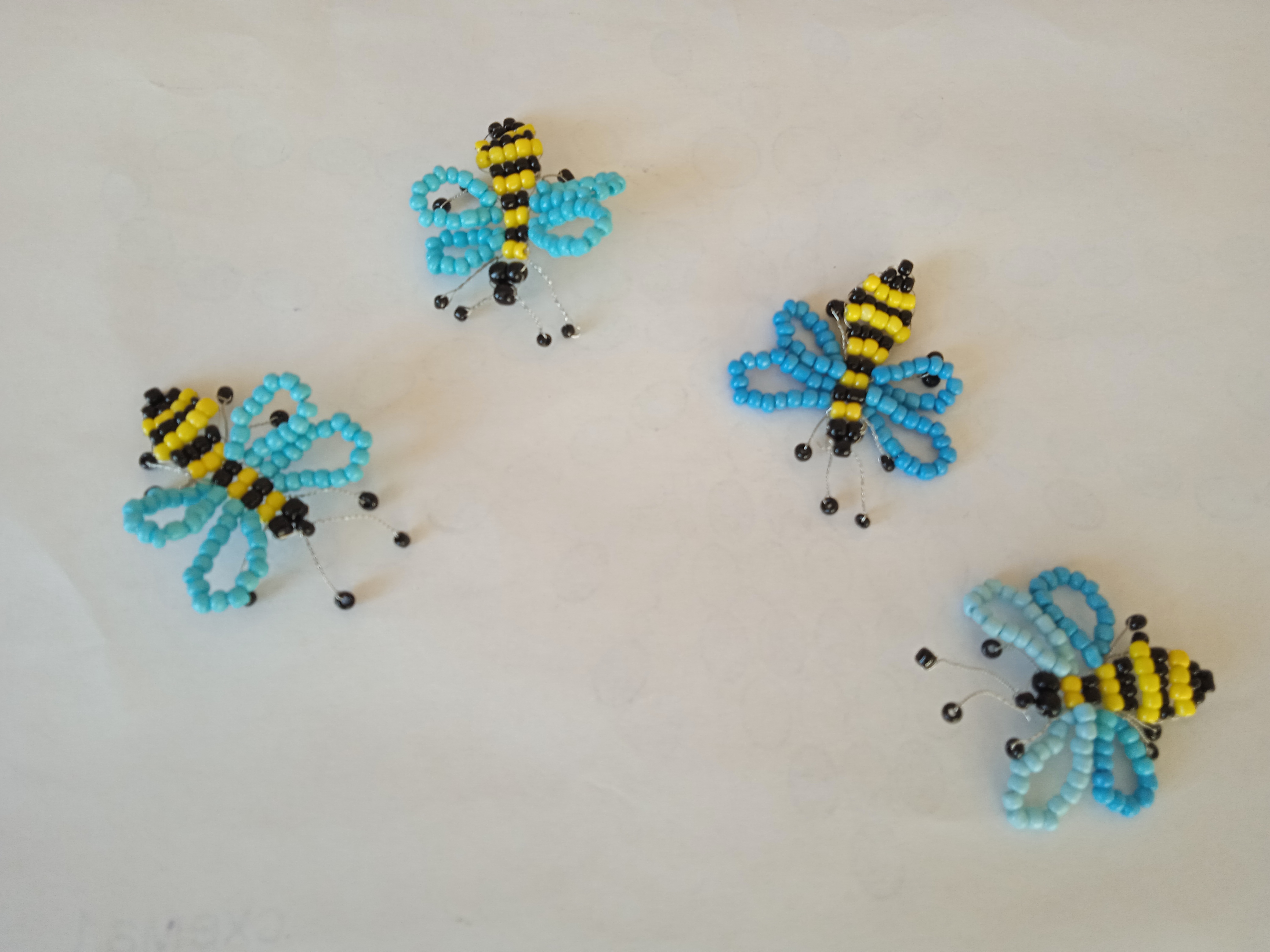 Схема выполненной поделкиПоделка выполнена из бисера и проволоки в технике параллельного плетения