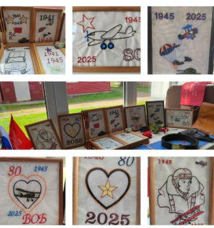 Работа выполнена для экспозиции школьного музея "Калейдоскоп рукоделия " к 80-летию защитника Отечества и представляет композицию вышивок на ткани!Данные участника