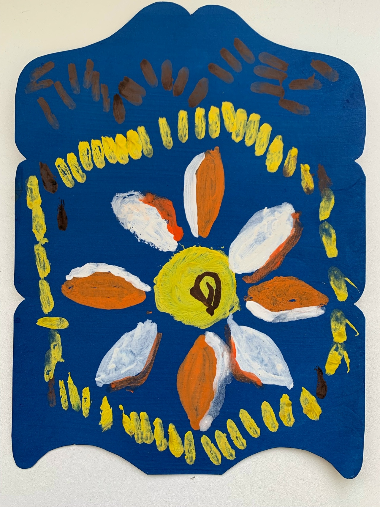 Обвинская роспись выполнена на картоне в виде прялки. Прялки имели сакральное значение: считались оберегами для обеспечения счастливой семейной жизни.Данные участника