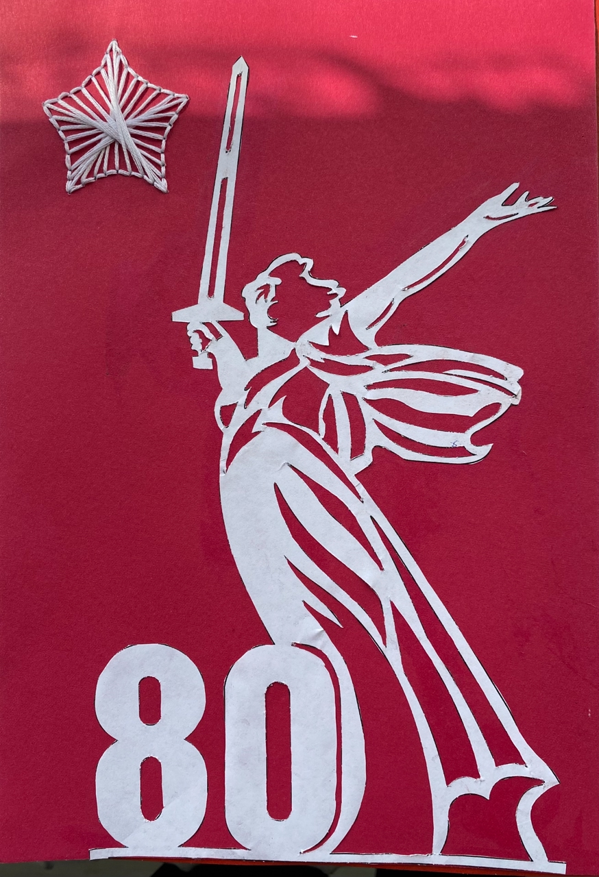 Открытка к 80-летию Победы. Работа выполнена в технике "Вытынанка" с элементами вышивки.Данные участника
